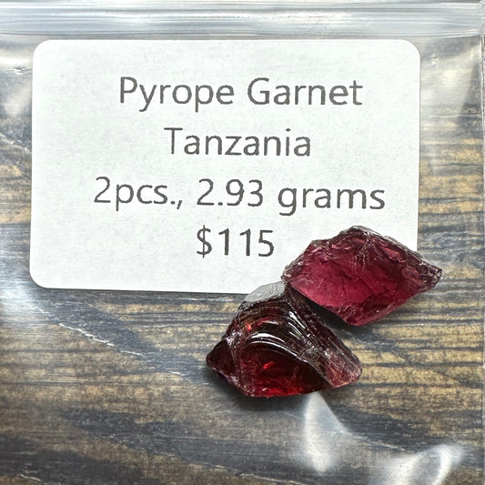 PYROPE GARNET 2pcs., 2.93g Facet Rough Parcel