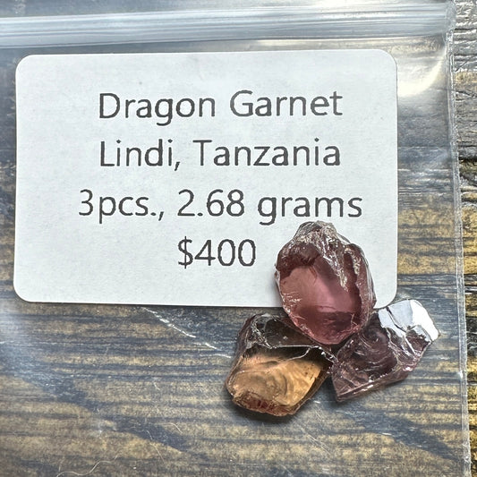 DRAGON GARNET 3pcs., 2.68g Facet Rough Parcel