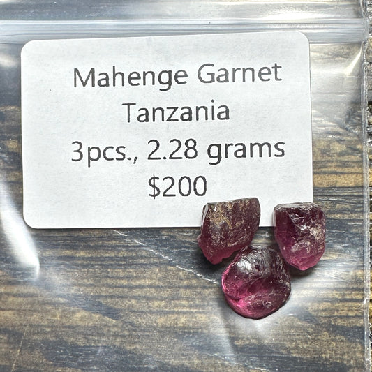 MAHENGE GARNET 3pcs., 2.28g Facet Rough Parcel