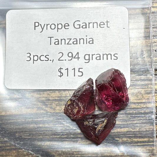PYROPE GARNET 3pcs., 2.94g Facet Rough Parcel
