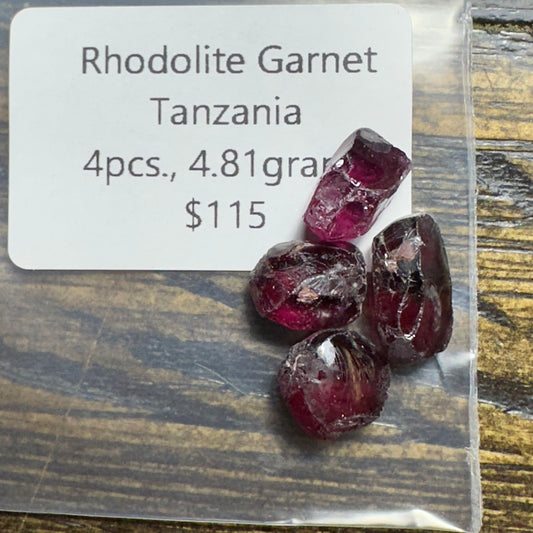 RHODOLITE GARNET 4pcs., 4.81g Facet Rough Parcel