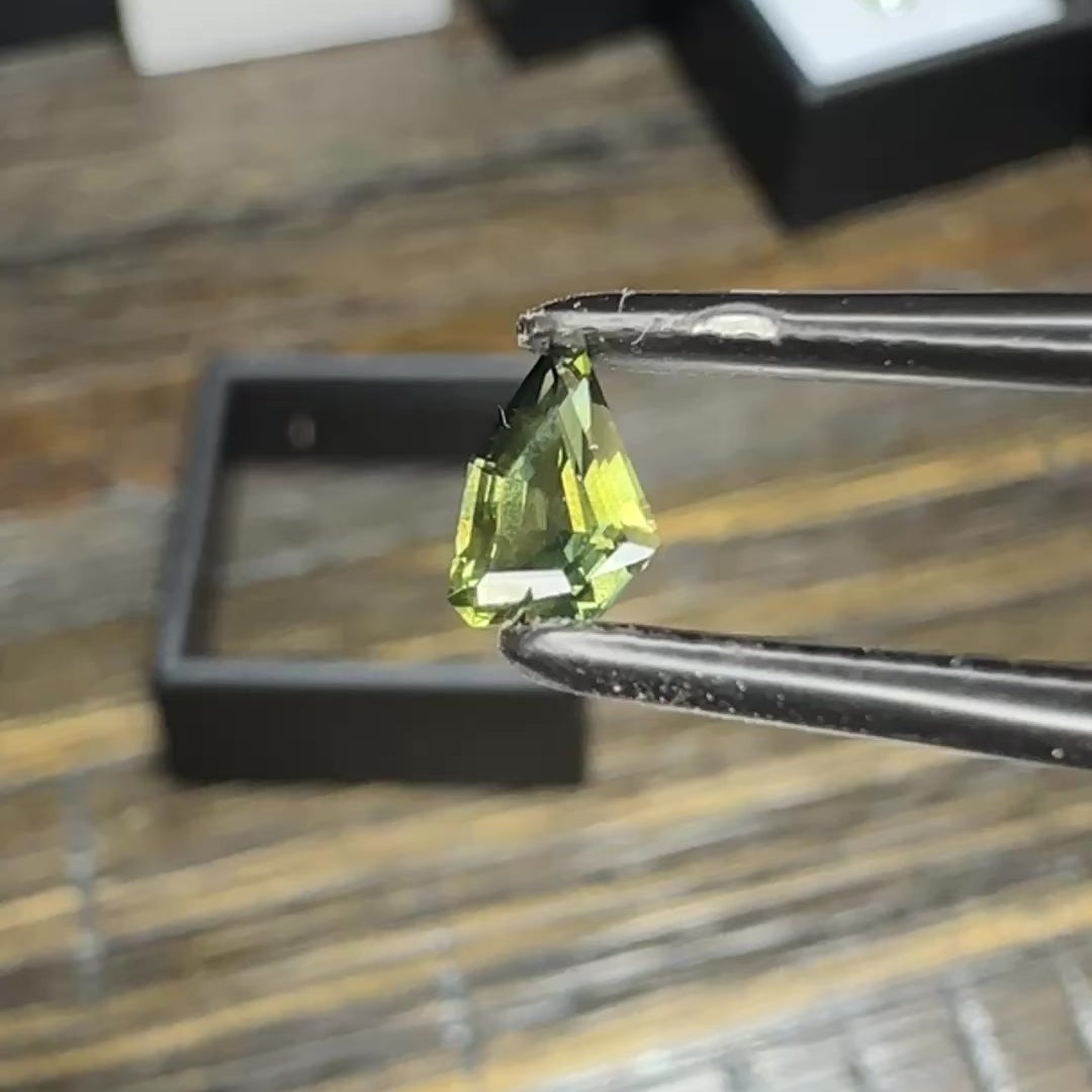 A yellow green freeform natural Sapphire from Kenya. A nice very early example of my faceting. Really well cut and polished with a unique shape to it. It’s a gorgeous sapphire, and is sure to thrill its new owner!