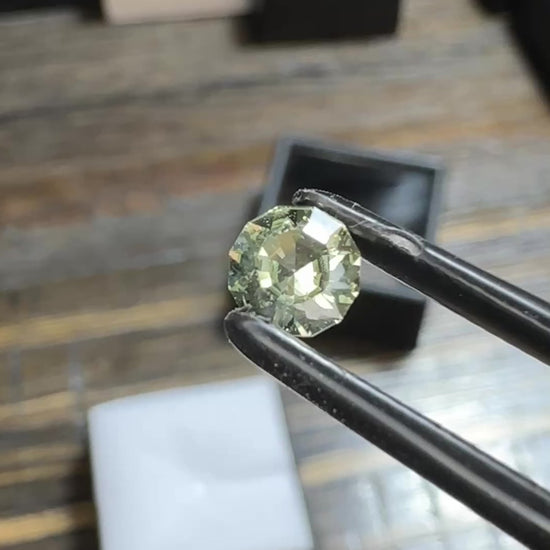 A beautiful pale yellow Malawi Sapphire eyeclean with some confetti under a loupe. Really well cut and polished with a classic round shape to it. It’s a gorgeous sapphire, and is sure to thrill its new owner!