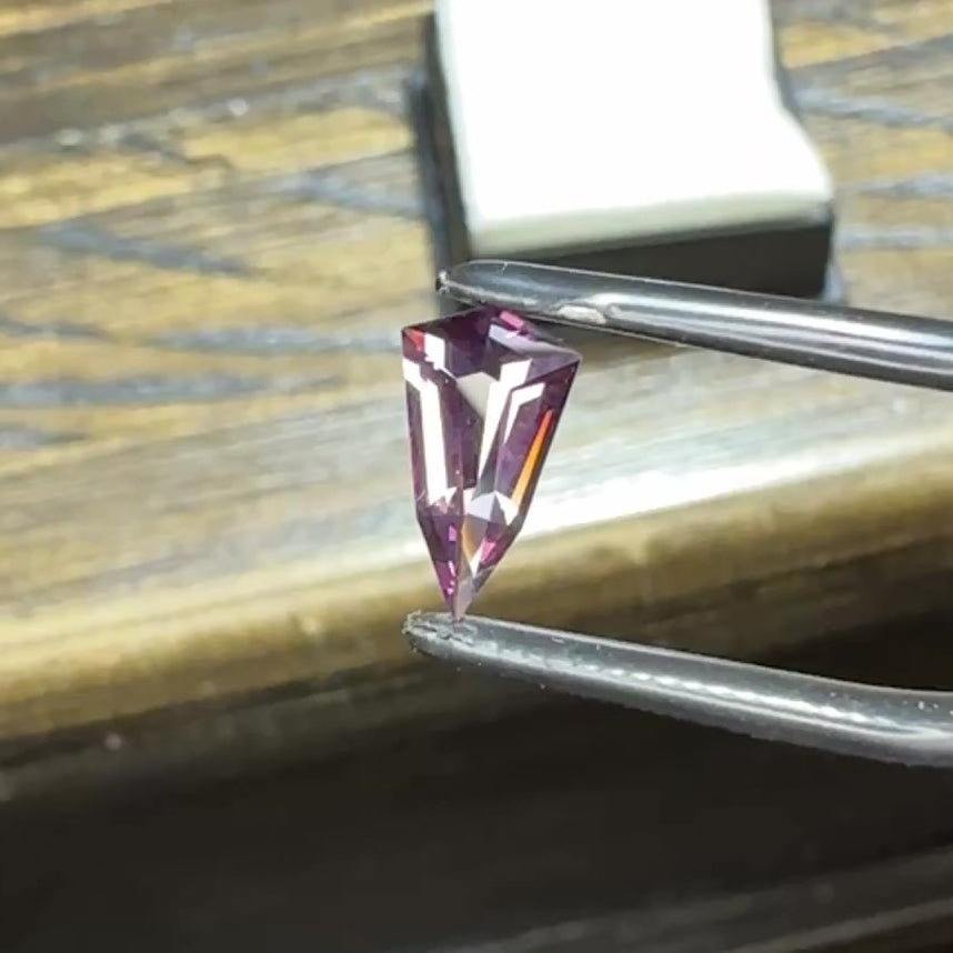 A beautiful high end Tanzanian violet Spinel in a unique art deco styled cut!!! Really well cut in a simple step cut design and superbly polished; It’s a gorgeous spinel, and is sure to thrill its new owner!