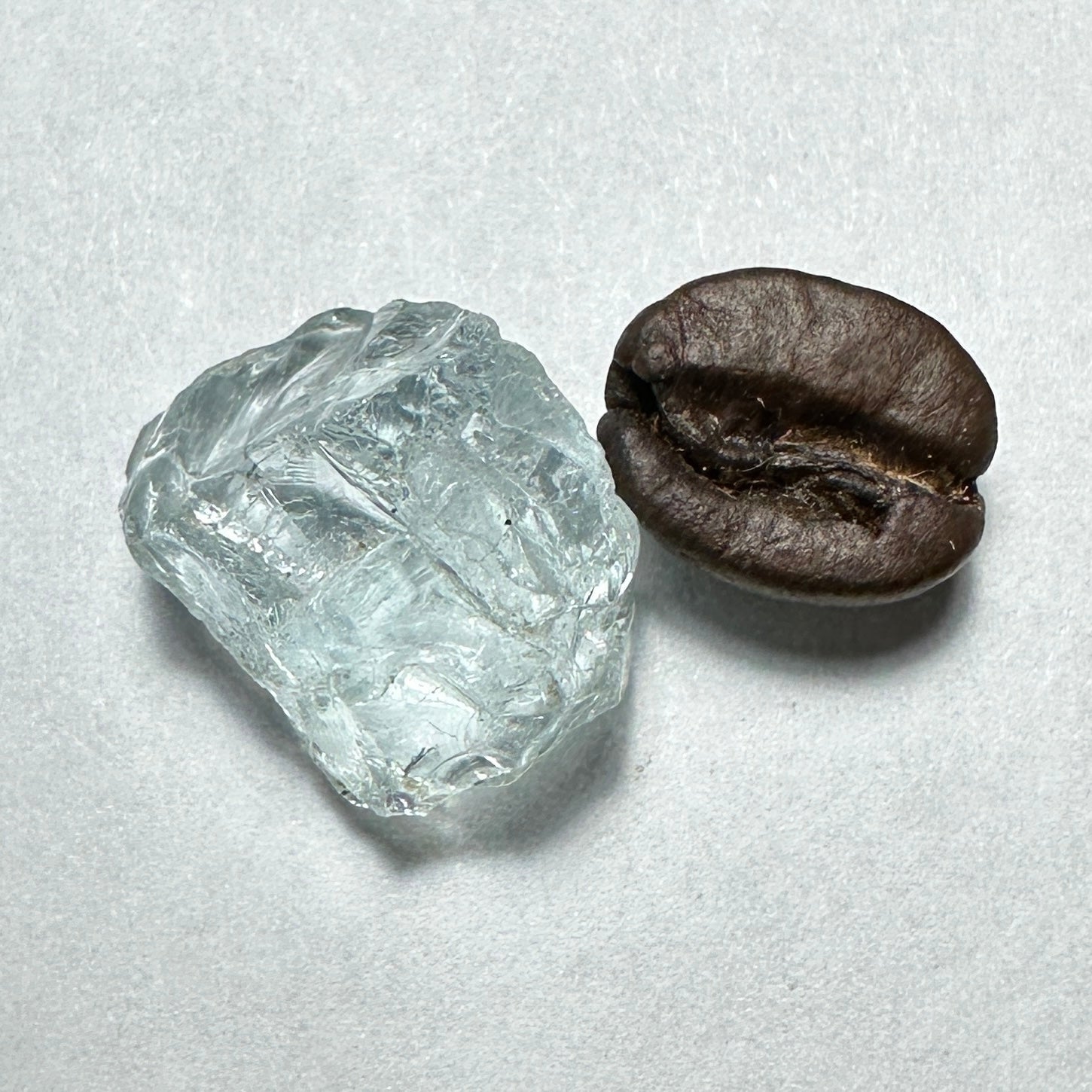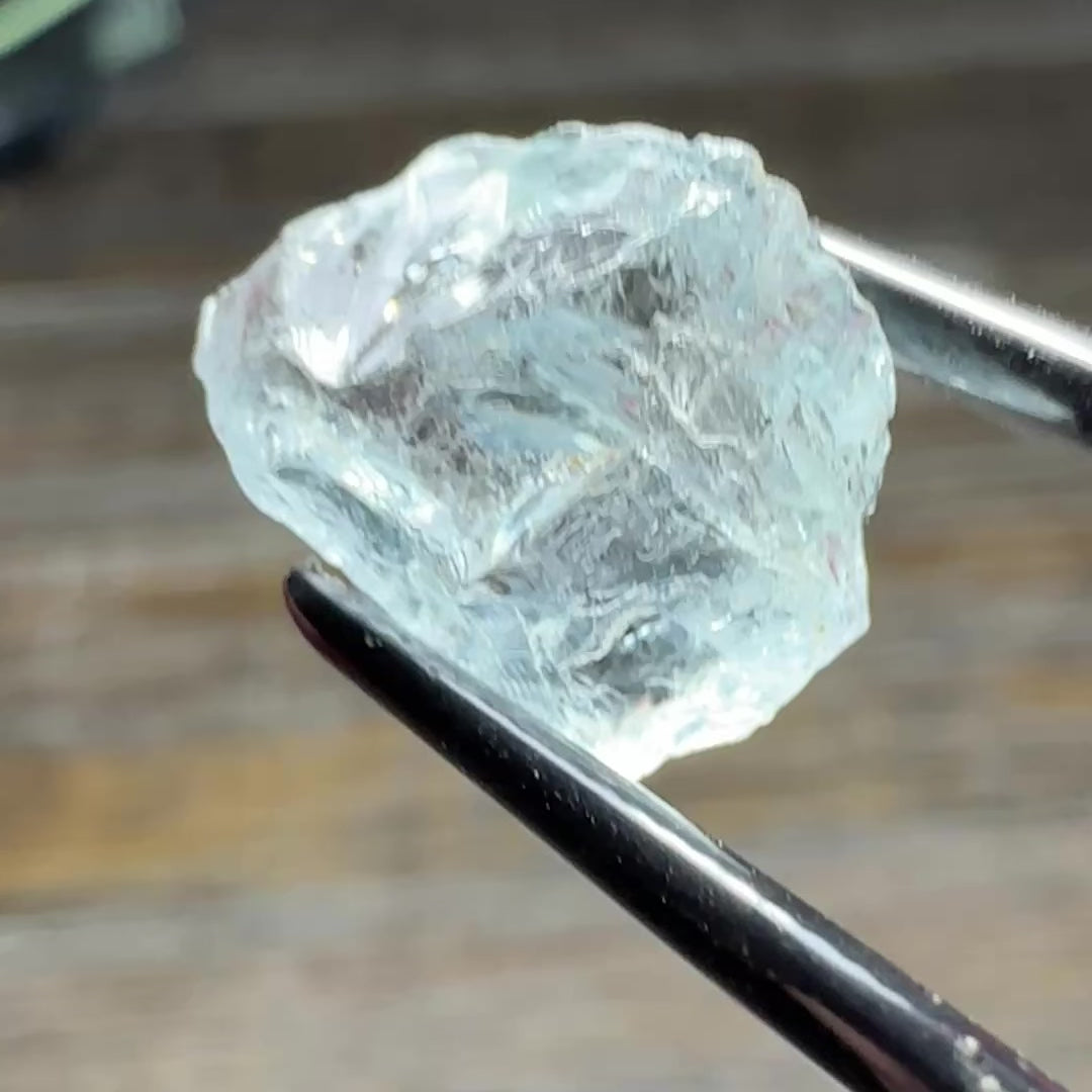A watery clean light blue Aquamarine with god enough saturation for a light blue cut with great clarity! This fine rough will cut an outstanding gem!