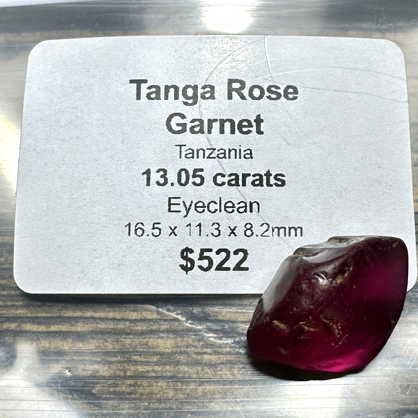 Beautiful open pink color Tanga Rose Garnet from the 2024 find with a great shape and i see no sugars!!! From a batch I recently purchased at high cost, but of excellent quality; none of those pesky sugar bombs and phenomenal open color!!! Truly a blocky good sized excellent cutter!