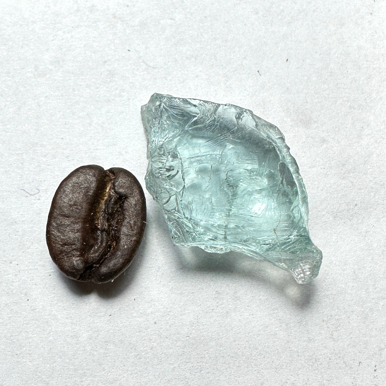 Reasonably well saturated Nigerian Aquamarine Beryl with a good shape for a high return. Looks to be a superb eyeclean cutter!