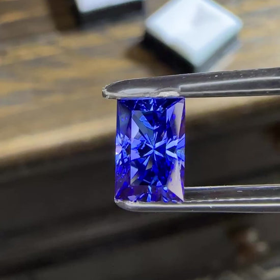 Offered here is a deep blue gemstone, cut by me, of clean gorgeous Tanzanite that im not 100% sure is heated, but I believe so!!! Cut in my own custom brilliant rectangle design. It’s a gorgeous eyeclean gemstone, and is guaranteed to thrill its new owner!