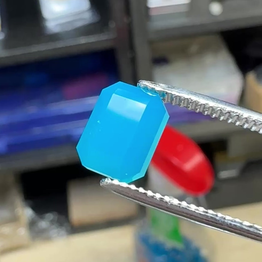 Offered here is a true rarity! Top blue Gem Silica faceted cabochon with minimal inclusion and maximal glow and top AAA color!!!! VVS, a few tiny internal malachite blebs that are hard to see. Bottom edge beveled, bottom smooth and unfinished. It’s a bright gorgeous faceted cabochon gem, and is guaranteed to thrill its new owner!