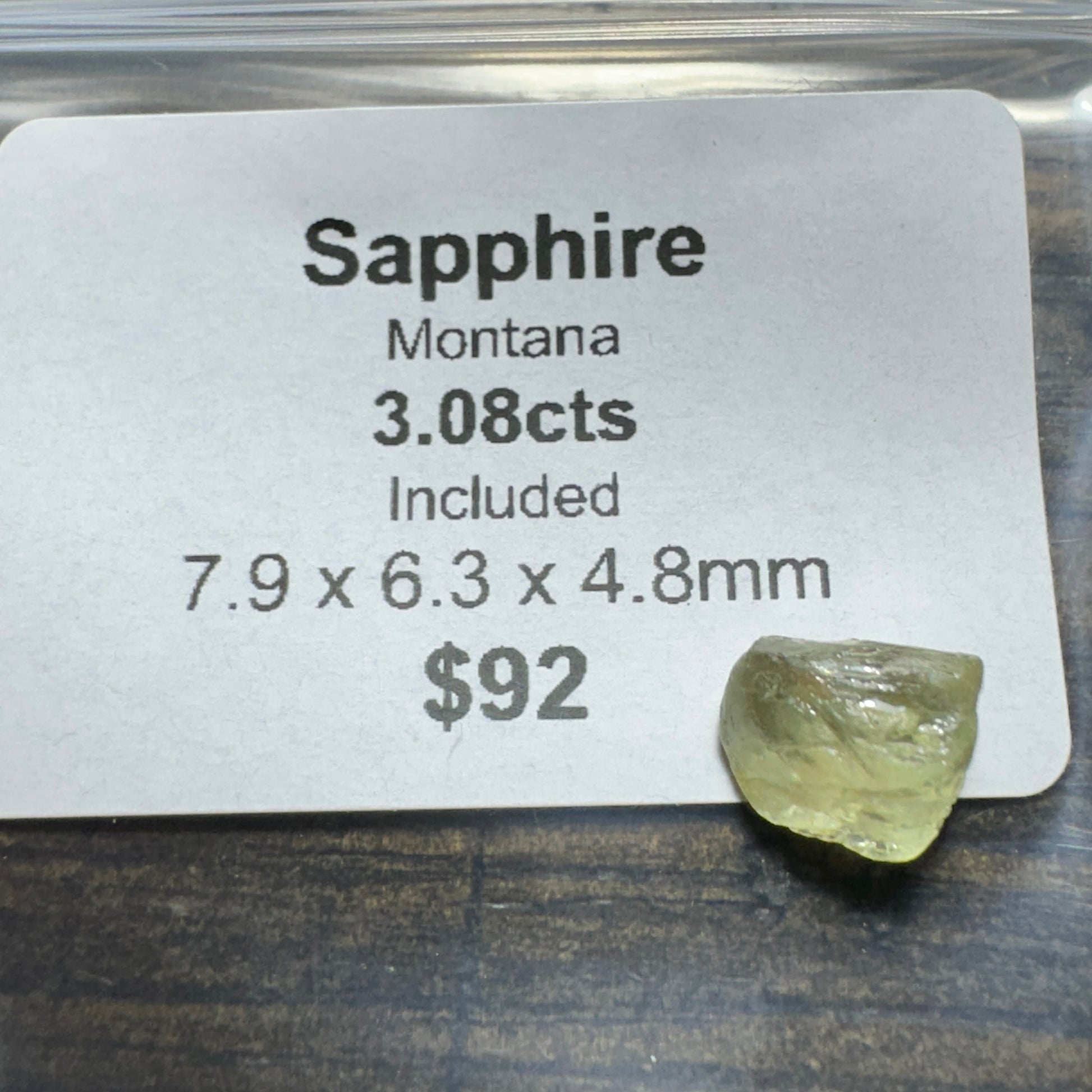 Putting up some included but gorgeous cutters of Montana Sapphire!!! Here is a well shaped yellow from an old collection! It has some cracks/inclusions. It will cut a gorgeous gem nonetheless!!!