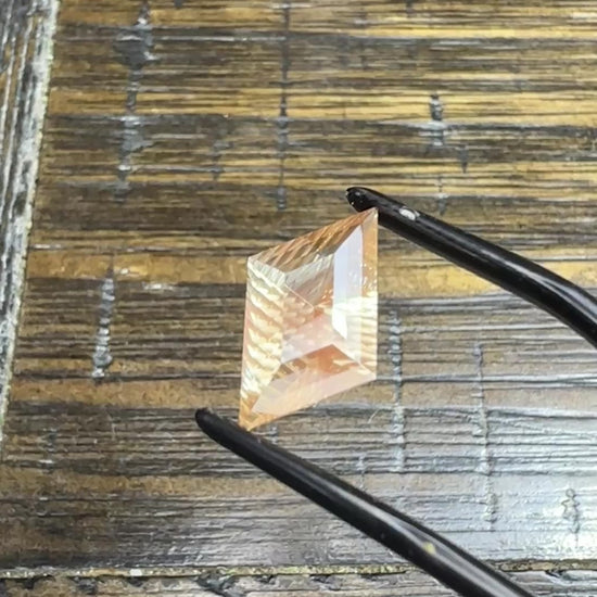 Stunning “dragonscale” concave cuts on the pavilion of a schiller loaded Gold Sunstone with an excellent parallelogram shape!! It will make a phenomenal custom piece of jewelry!!!
