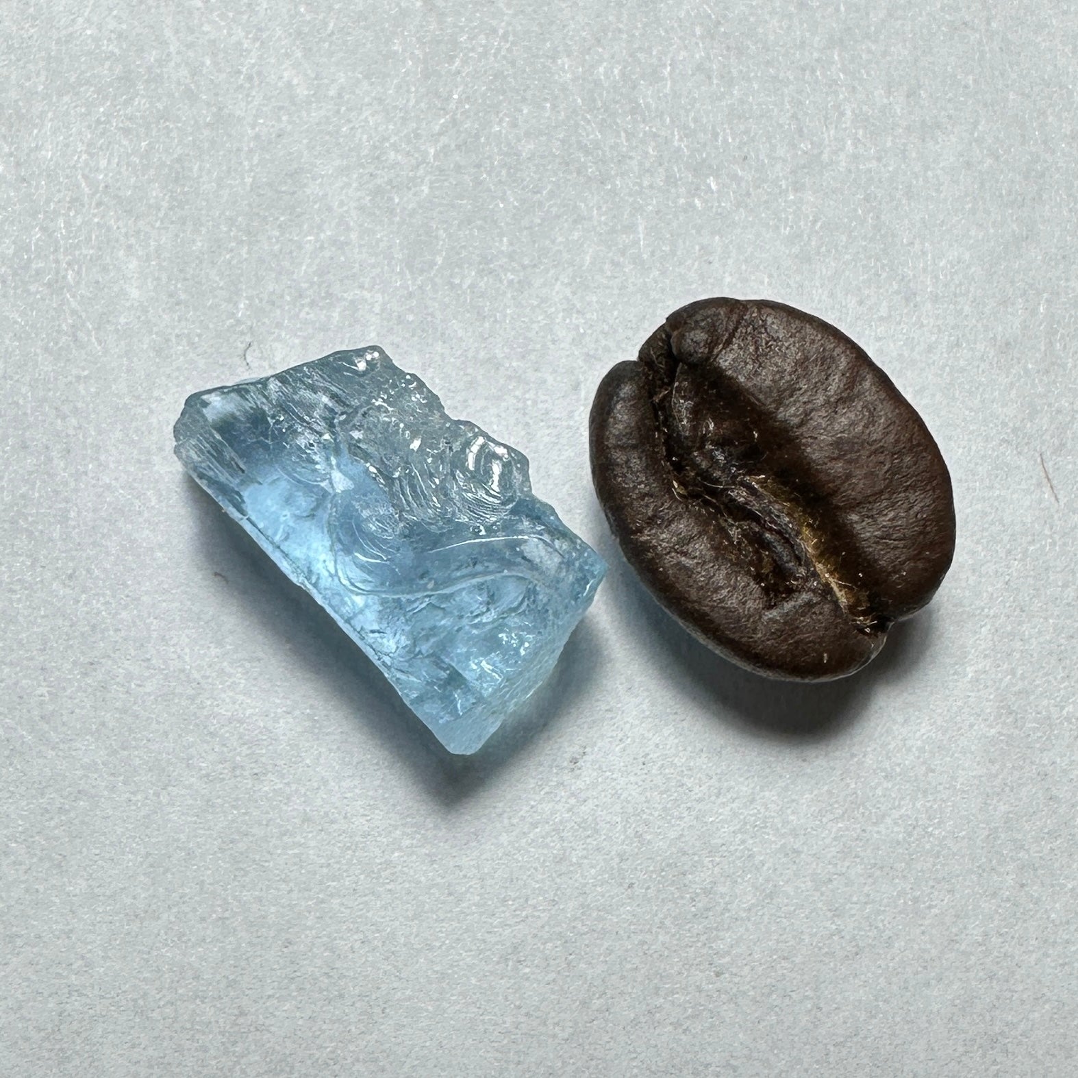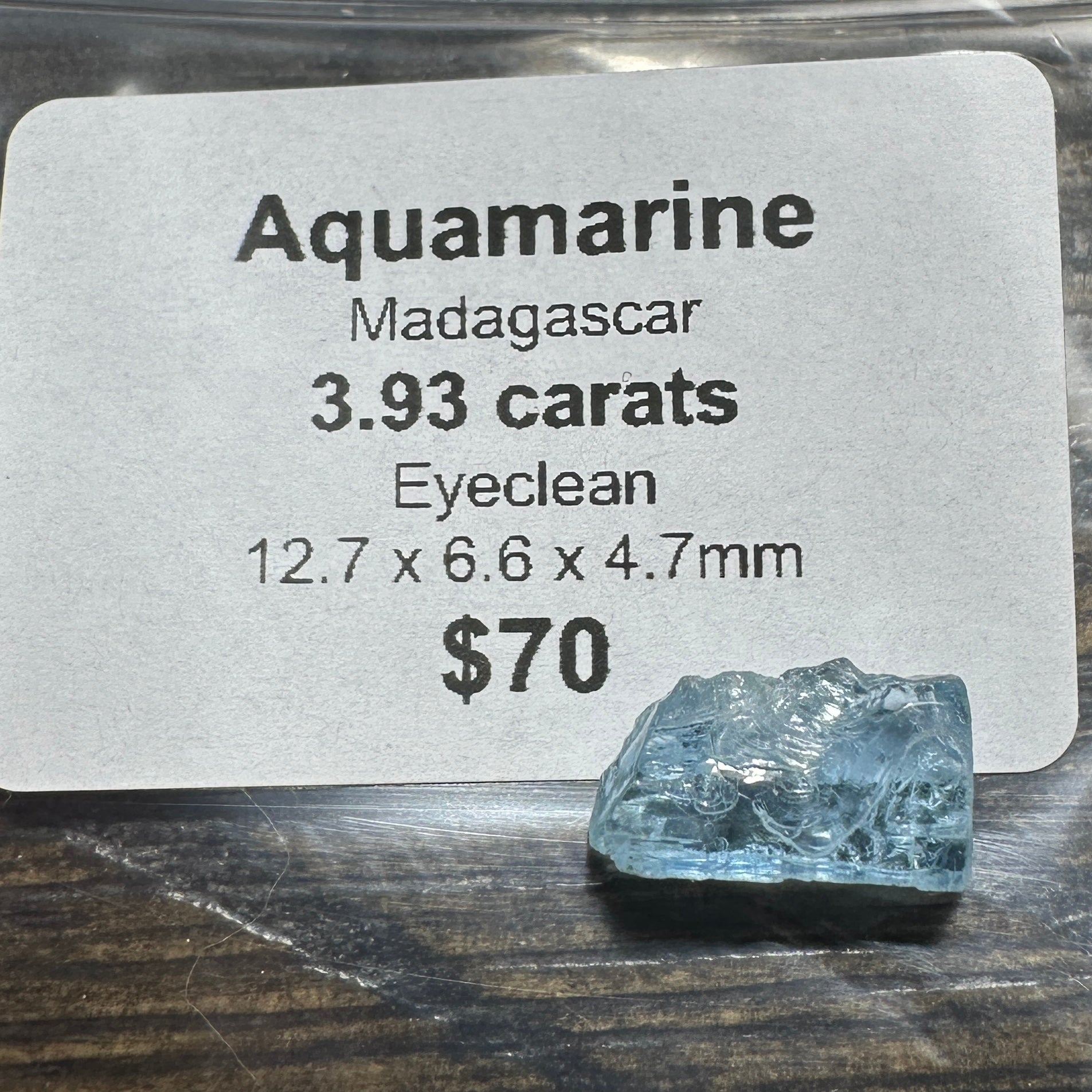 A watery clean good blue Aquamarine with great saturation for a small blue cut with great clarity! This fine rough will cut an outstanding little gem!