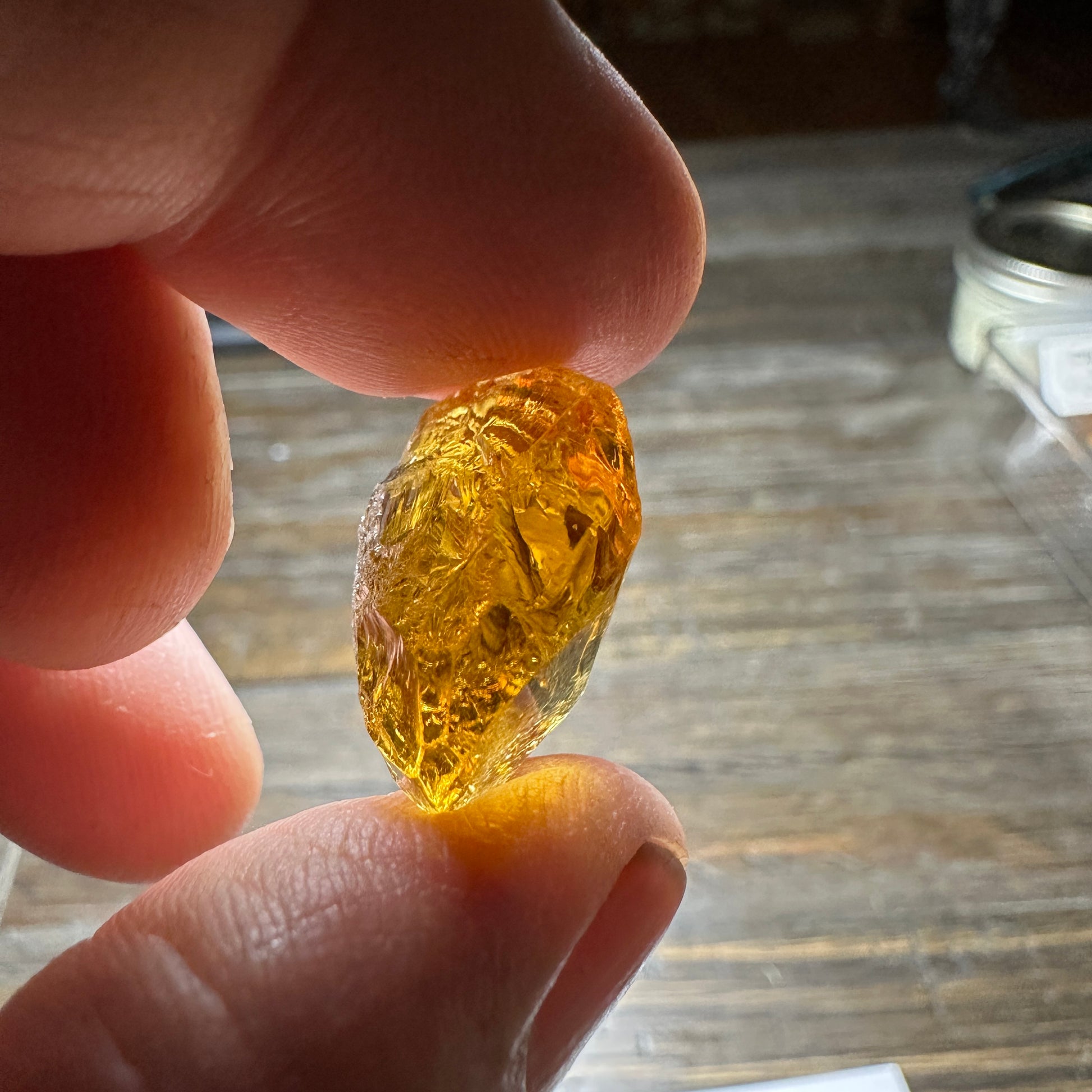 Unique perfectly saturated chunk of Citrine Quartz perfect for faceting. Eyeclean gem.