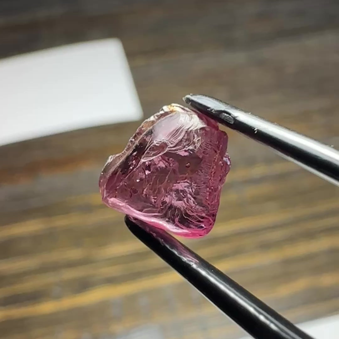 Beautiful saturated reddish pink garnet from Tanzania and super gemmy. I see micro sugar. Excellent cutter!