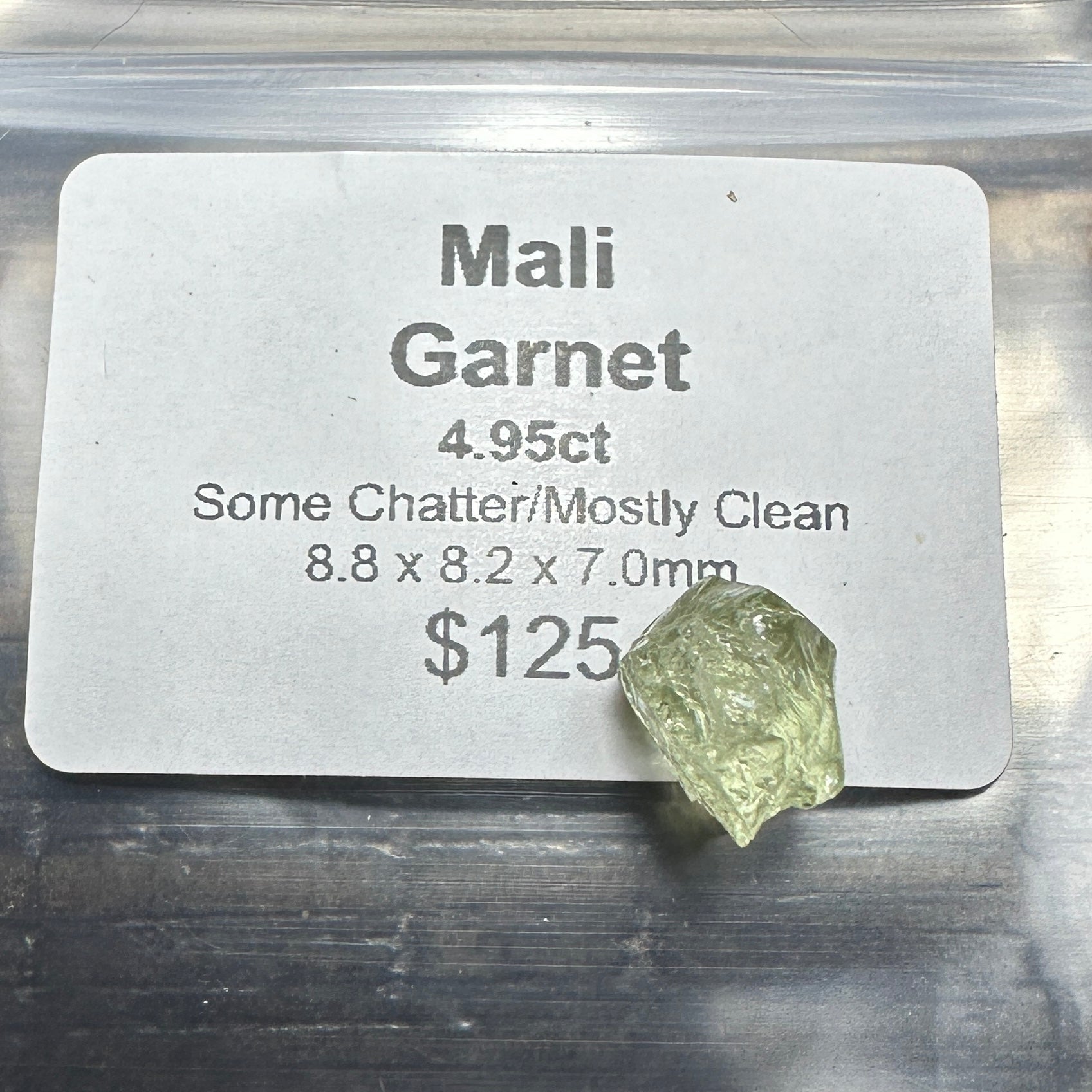 Classic Mali Garnet! They cut incredibly dispersive gems! Offered here nearly clean in pale green color with a good shape for high return. Will cut an eyeclean gem.