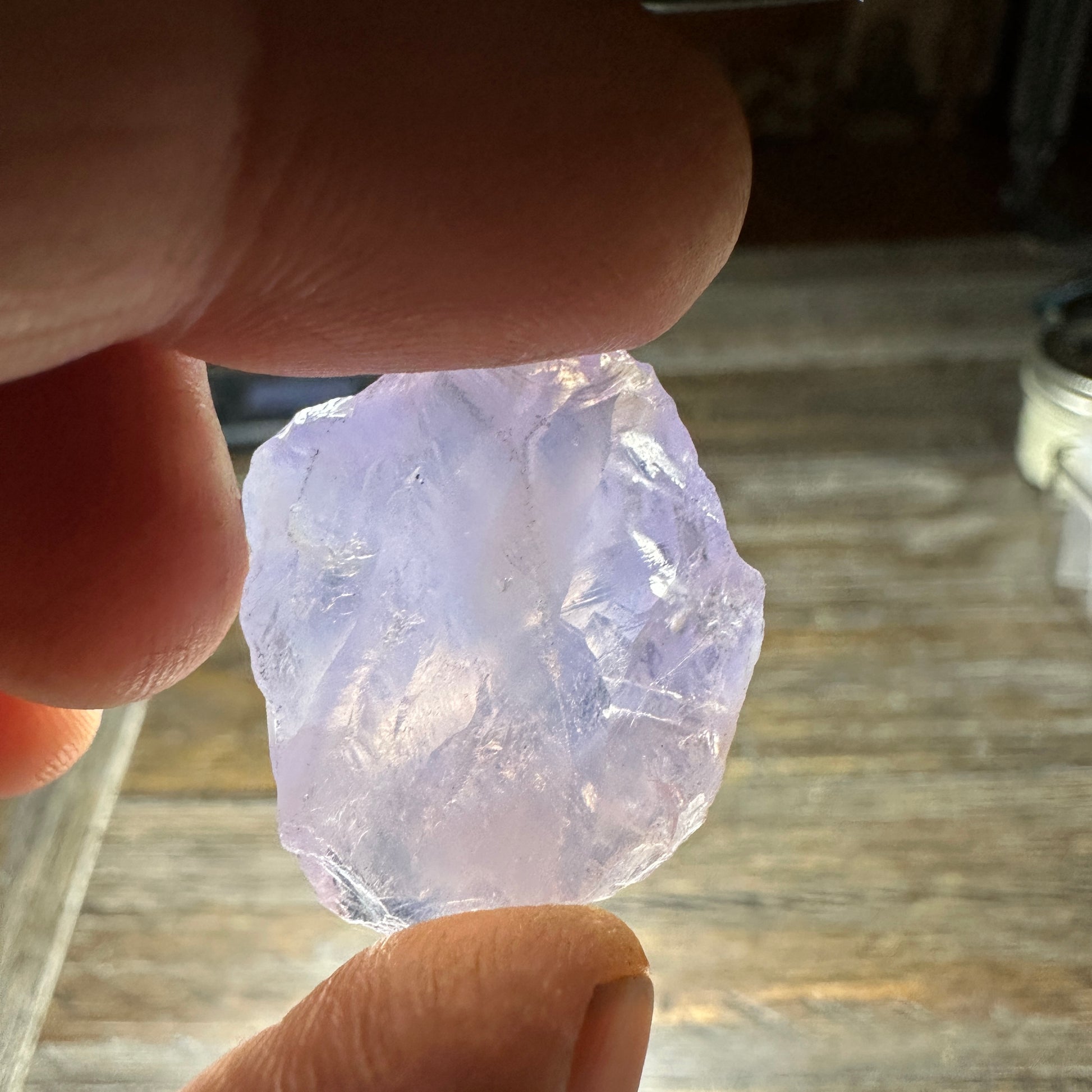 Beautiful milky piece of Lavender Quartz perfect for faceting. Marked as an eyeclean gem, but on second inspection i see a small flaw in it shown in the last photo. Price adjusted.