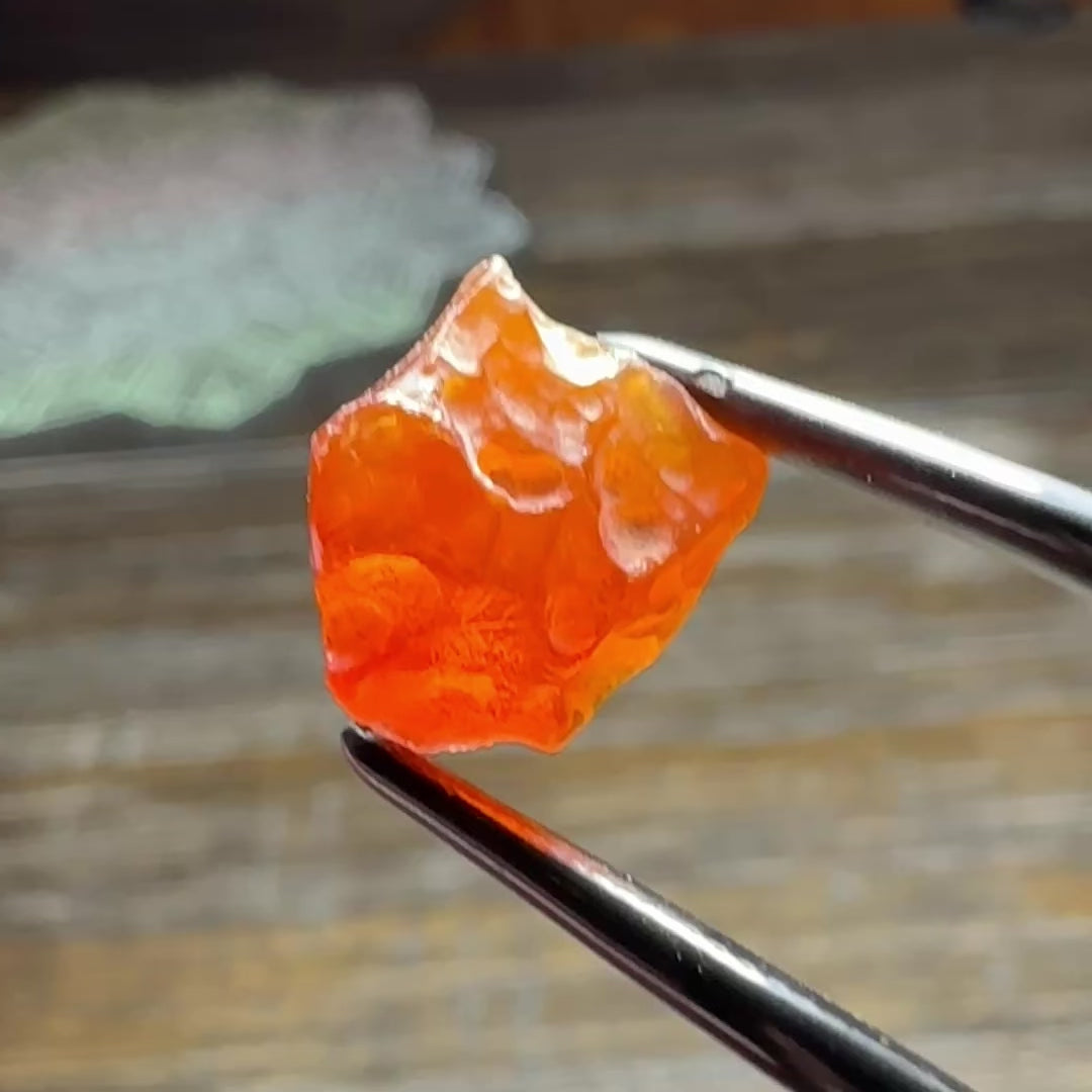 Old collection reddish orange chunk of Mexican Fire Opal perfect for faceting. Marked eyeclean.