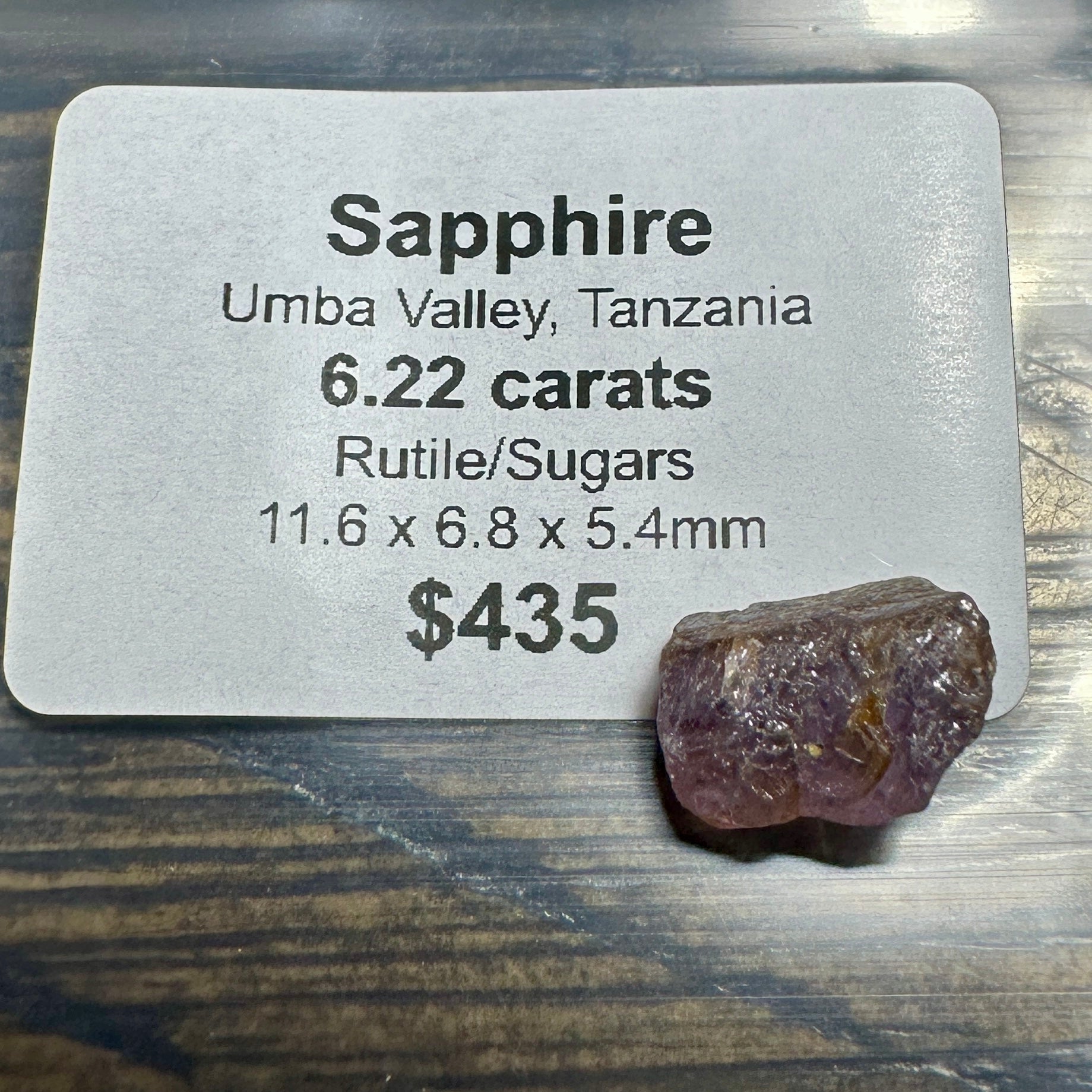 A pretty violet colored unheated Umba Sapphire of good size. The minings of Umba Sapphire are starting to slow down. There will be a day not too far off Umbas are no longer widely available. Almost all Umba Sapphire have at least rose channels in them as well as rutile, cracks, and sugars to deal with. We love and cut them for their wonderful colors! And a third the price of a similar clean Madagascan.