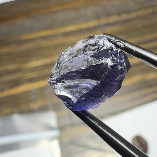 Beautiful perfectly saturated Iolite with just one feather near the edge to preform off! Excellent cutter!