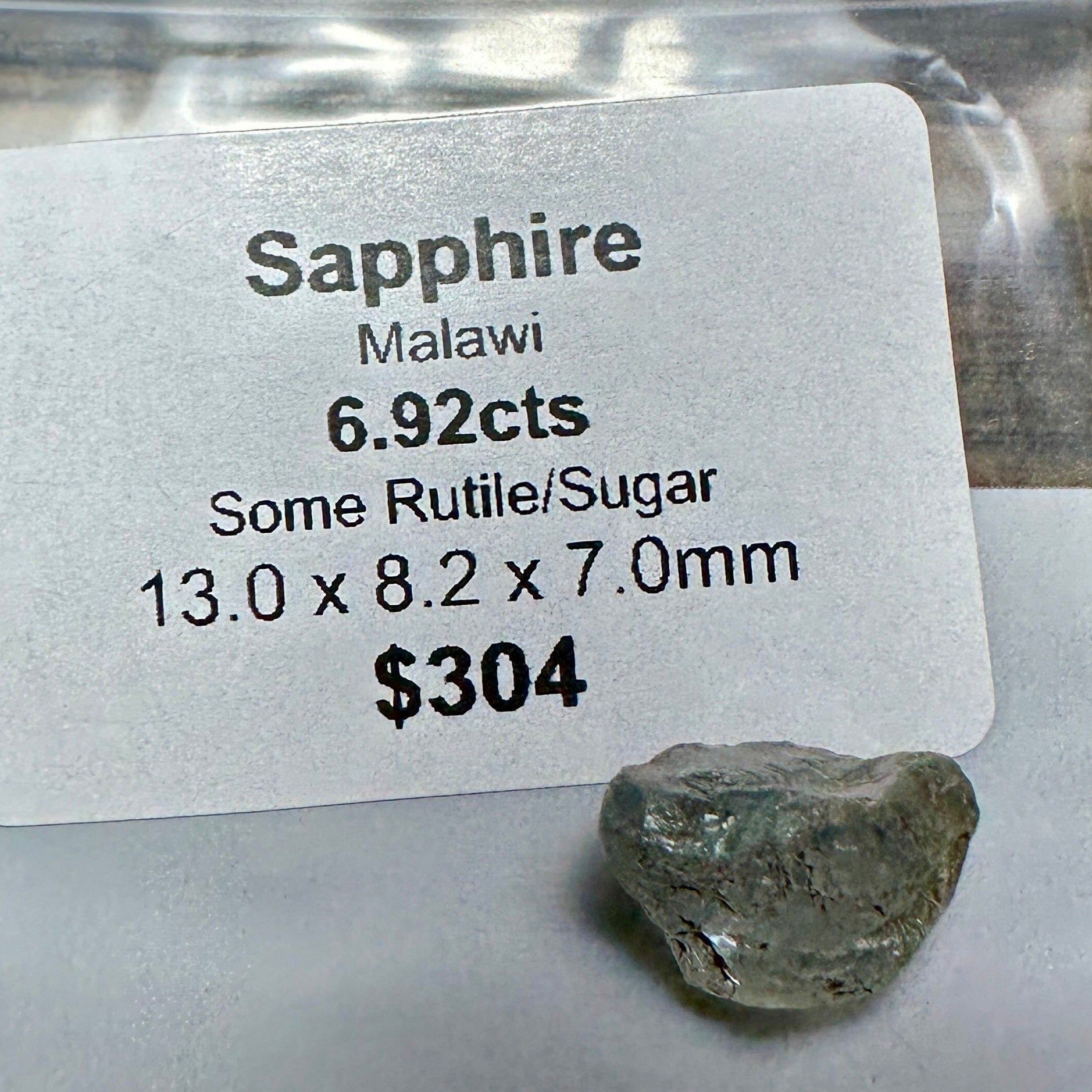 Beautiful chunk of sapphire from Malawi with excellent teal coloration and great saturation not dark at all. It does have typical rutile and some sugar as a lot of natural unheated rough does. A nice and scarce piece of facet rough that will cut you a gorgeous gem!