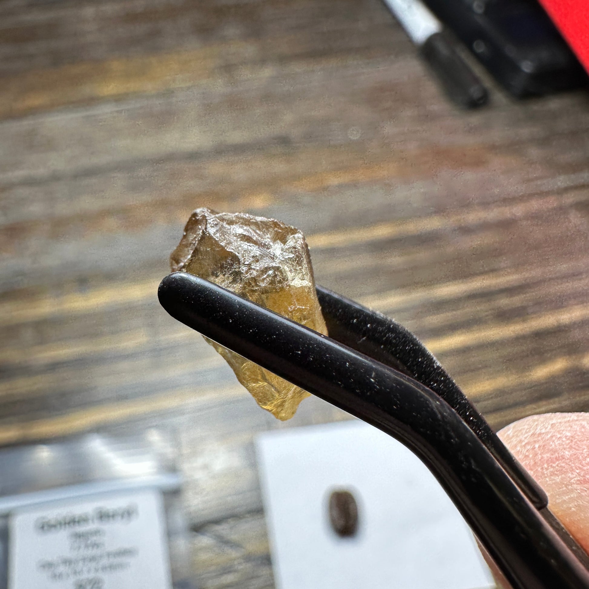 Nicely saturated Nigerian Golden Beryl with a good shape. Looks to be mostly eyeclean, with a tiny feather coming off the skin. Basically a superb cutter!