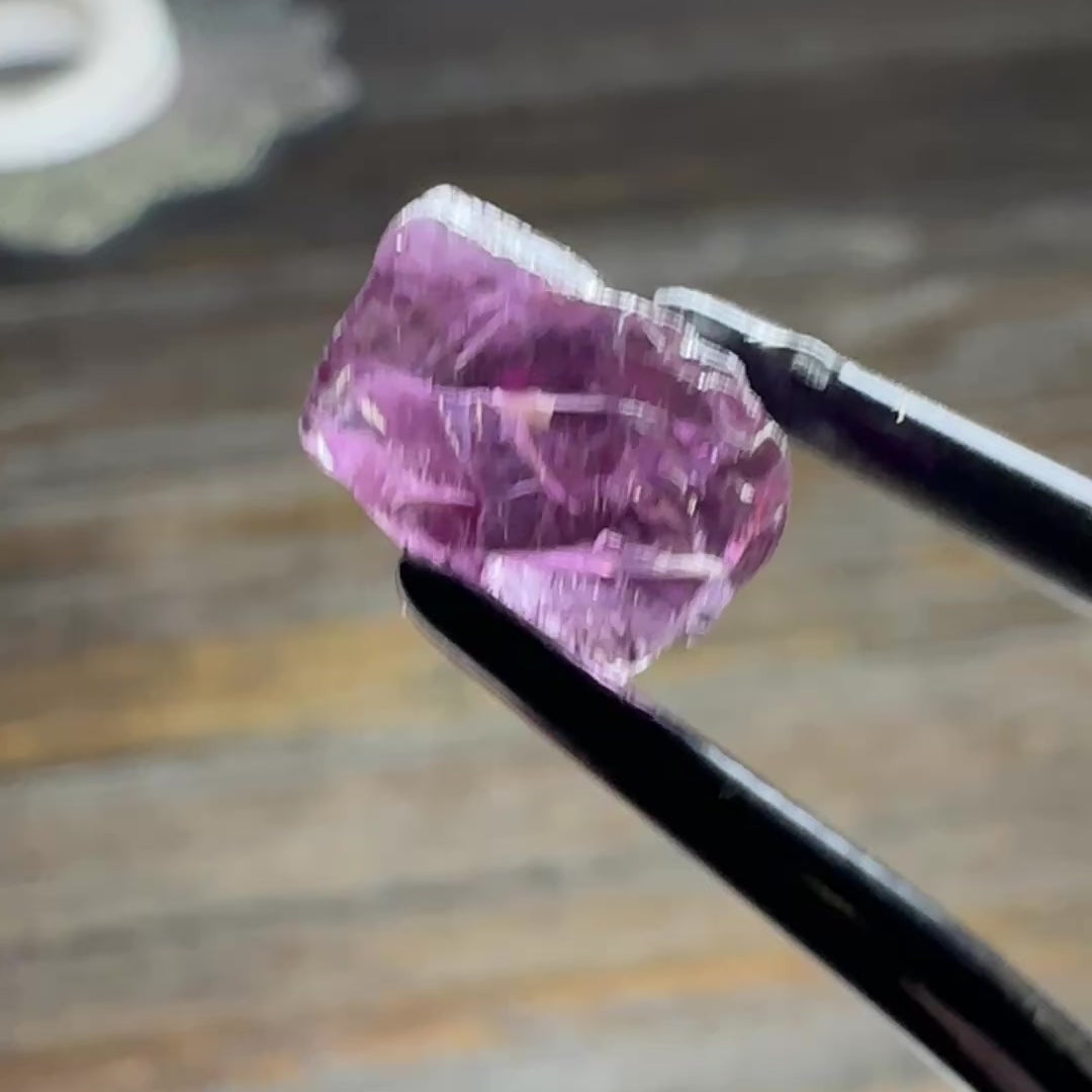 Beautiful open color Madagascar Malaya Garnet that shifts from near blue/violet to violet to reddish in the sun from fluorescence! Eyeclean but a fracture to work with and rutile needles as diagnostic under a loupe.