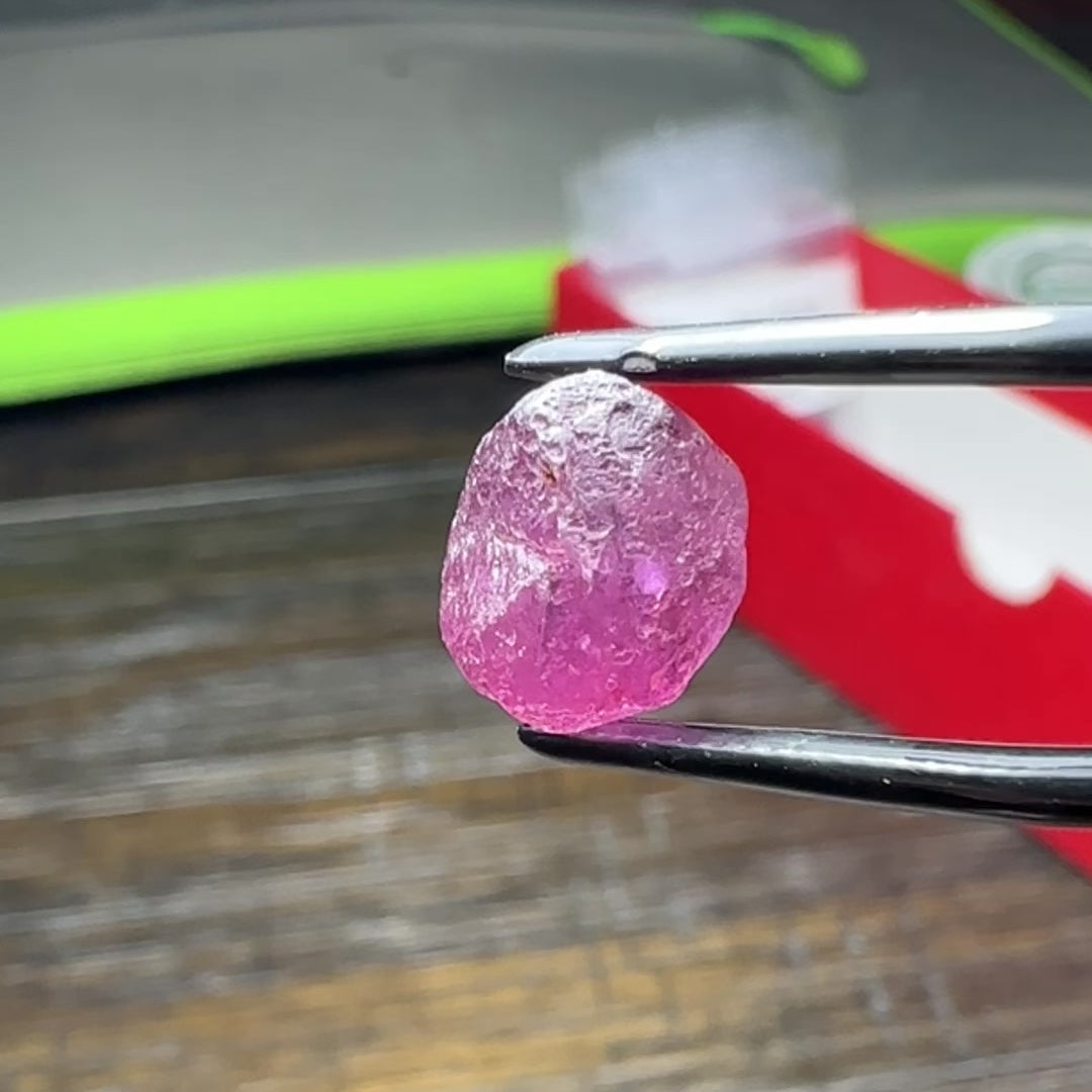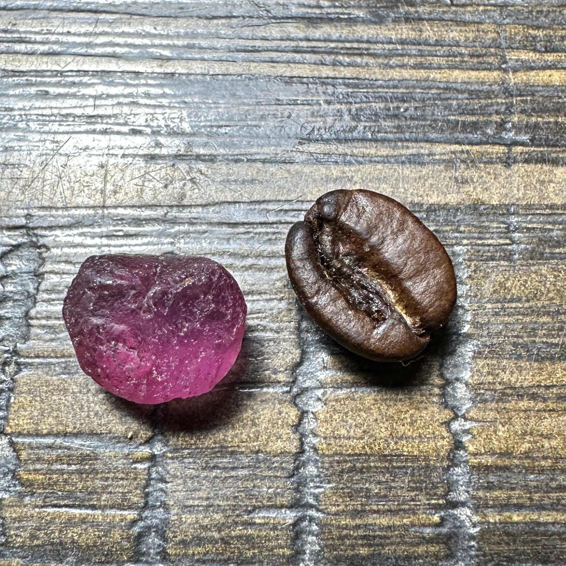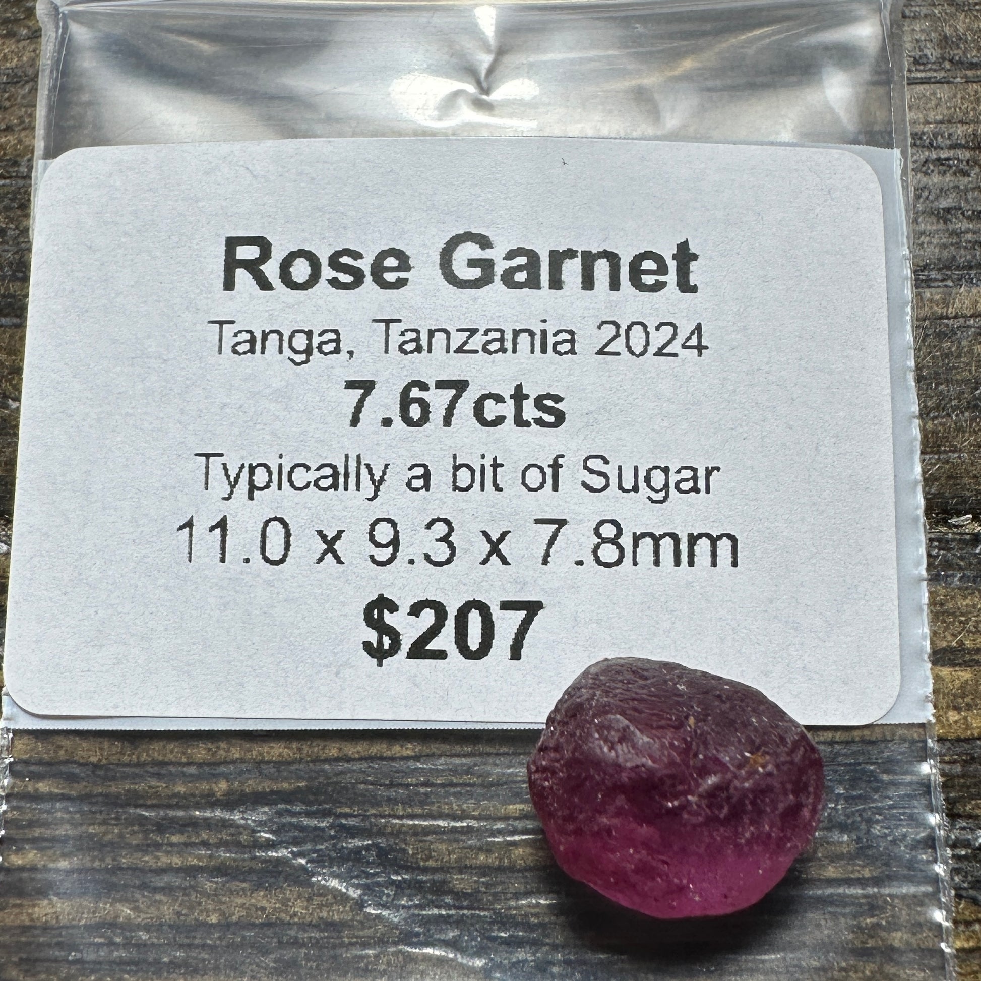 Beautiful rose pinks in the new 2024 find Tanga Garnets called Rose Garnets and sometimes Brain Garnets. Open color gems cut from this rough with great mix of pink red and violet on cut stones I’ve seen. Sugar in my parcel is typical and to be expected at least a little. The bigger stone I’m cutting(2/2025) has some sugar. So it’s noted.