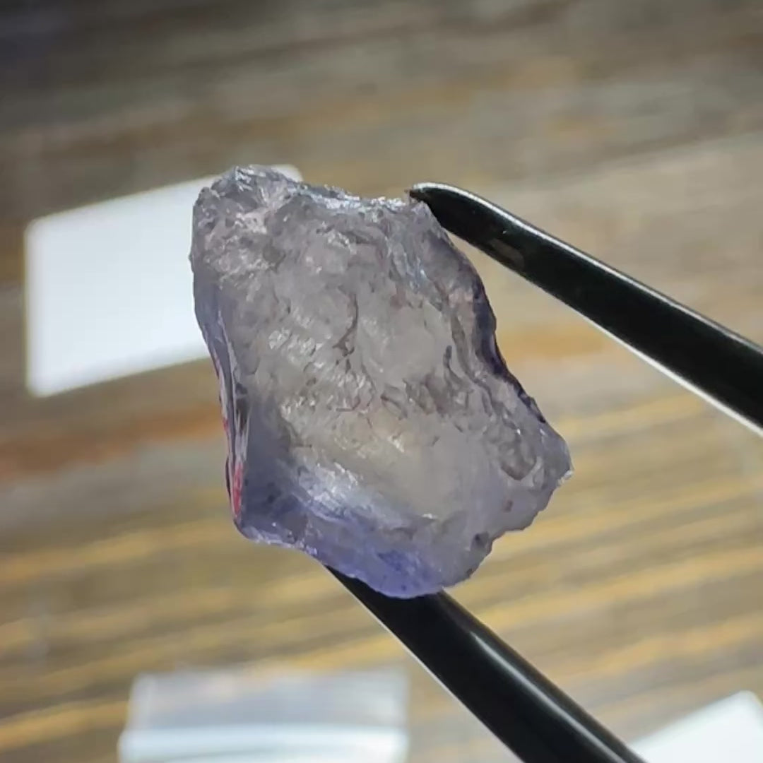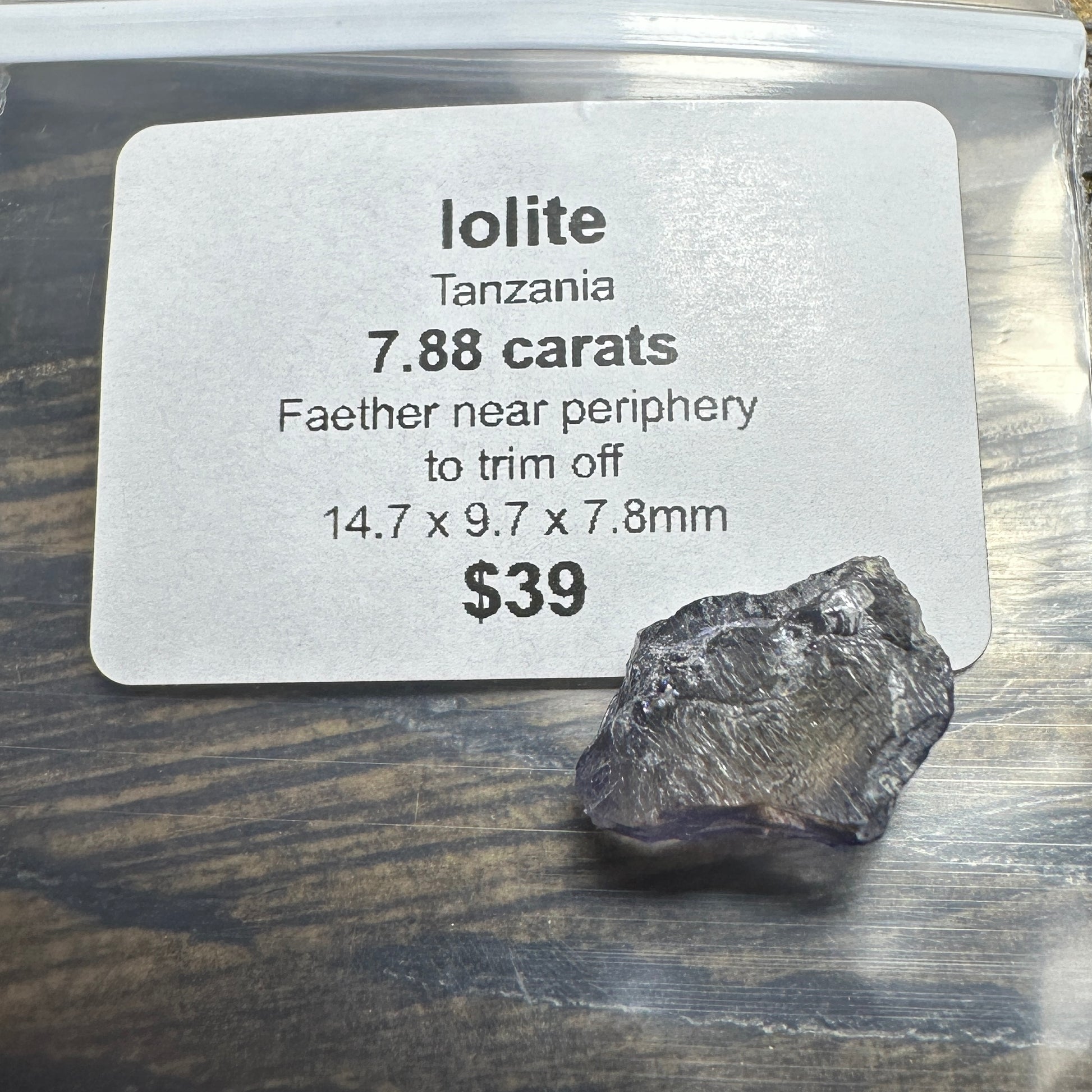 Beautiful perfectly saturated Iolite with just one feather near the edge to preform off! Excellent cutter!