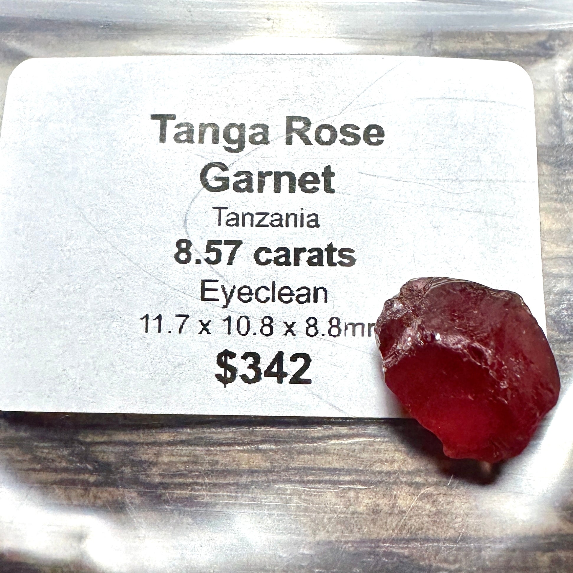 Beautiful open reddish pink color Tanga Rose Garnet from the 2024 find with a great shape and i see no sugars!!! From a batch I recently purchased at high cost, but of excellent quality; none of those pesky sugar bombs and phenomenal open color!!! Truly a blocky good sized excellent cutter!