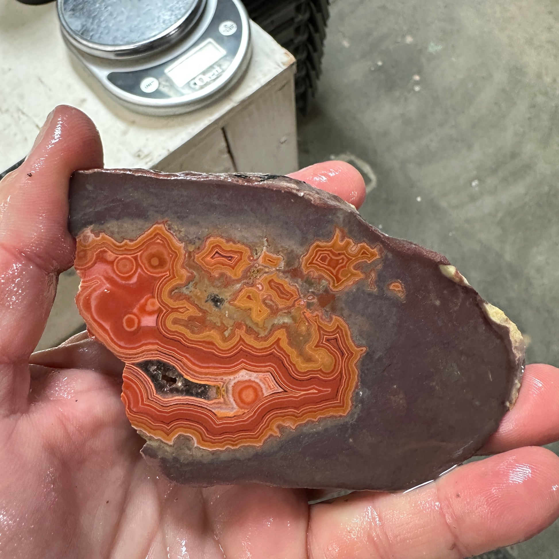 An excellent example of Dryhead Agate with an amazing set of fortifications that will cut phenomenal cabochons! Excellent quality, very solid for cutting cabs!!!