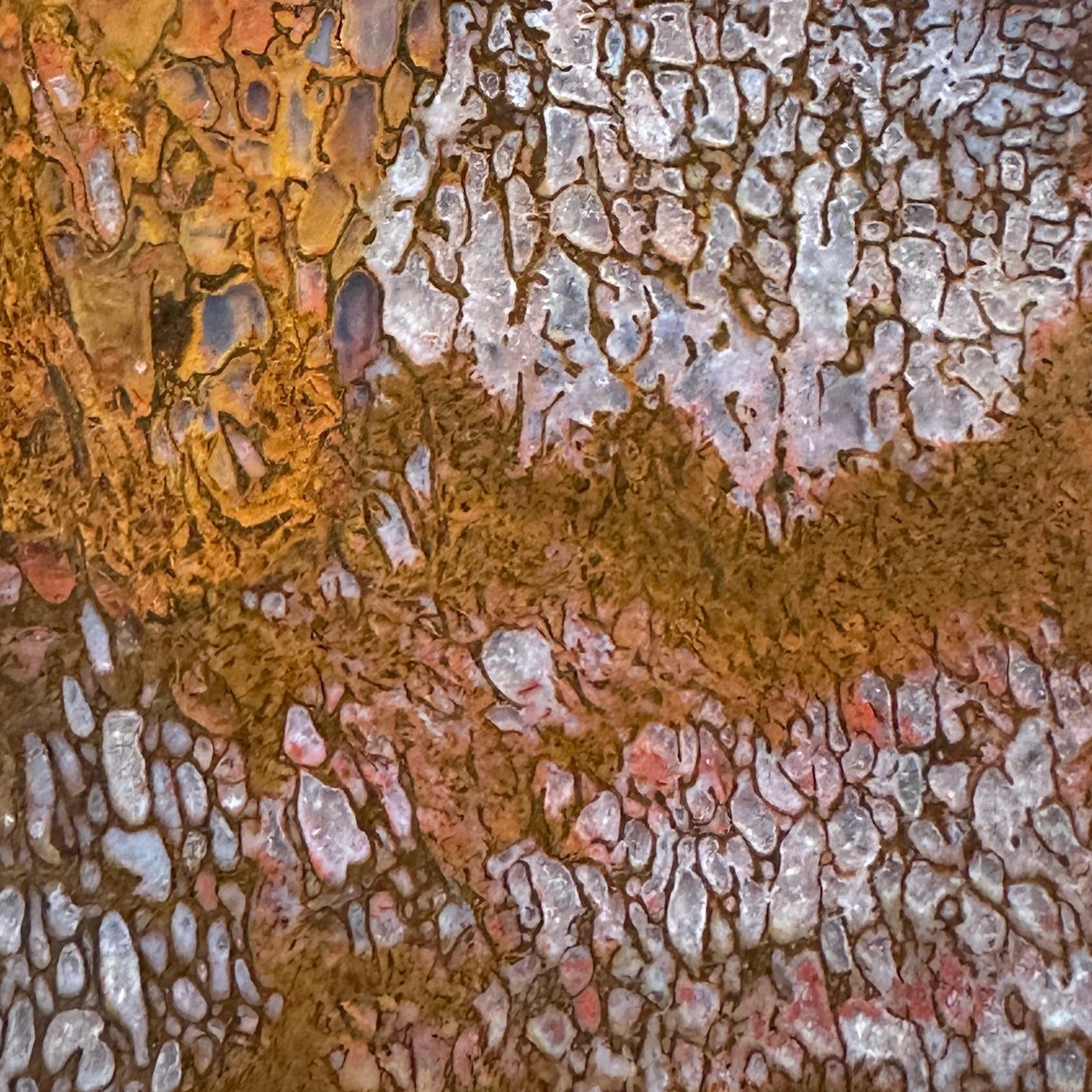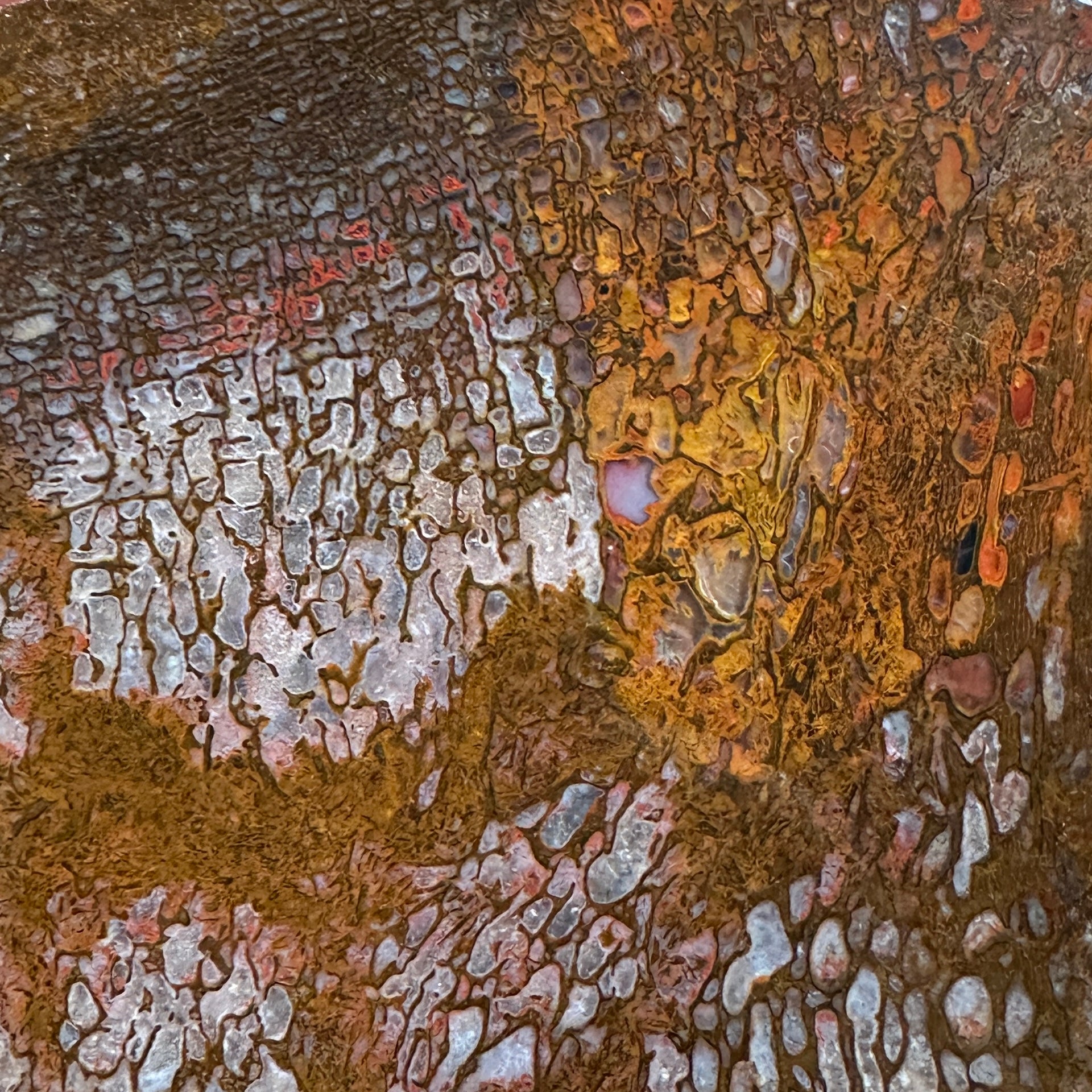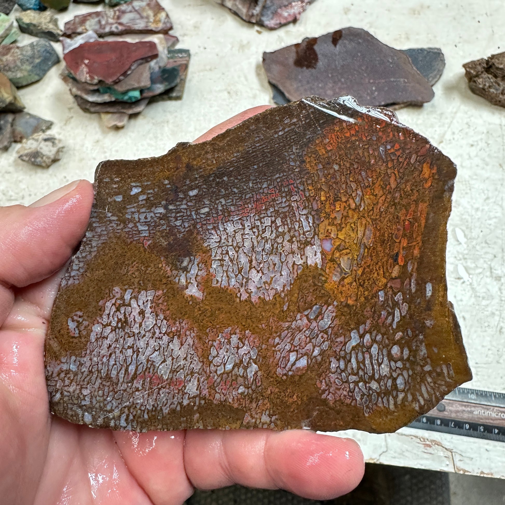 Great slice of Gembone with sharp colorful cells and smooth web. Excellent cutter; smooth, hard, choice.