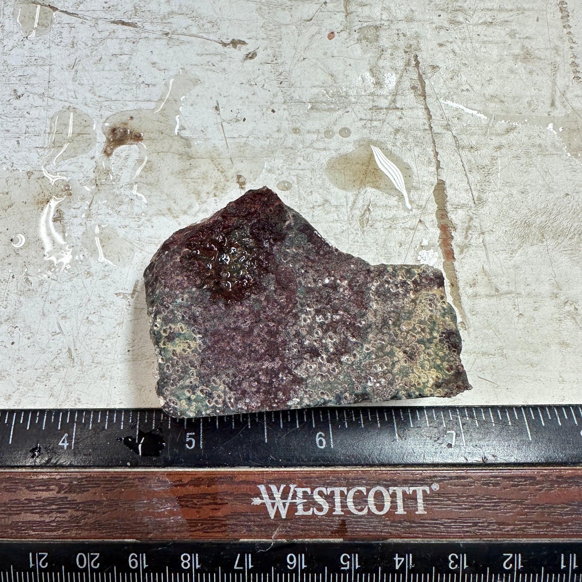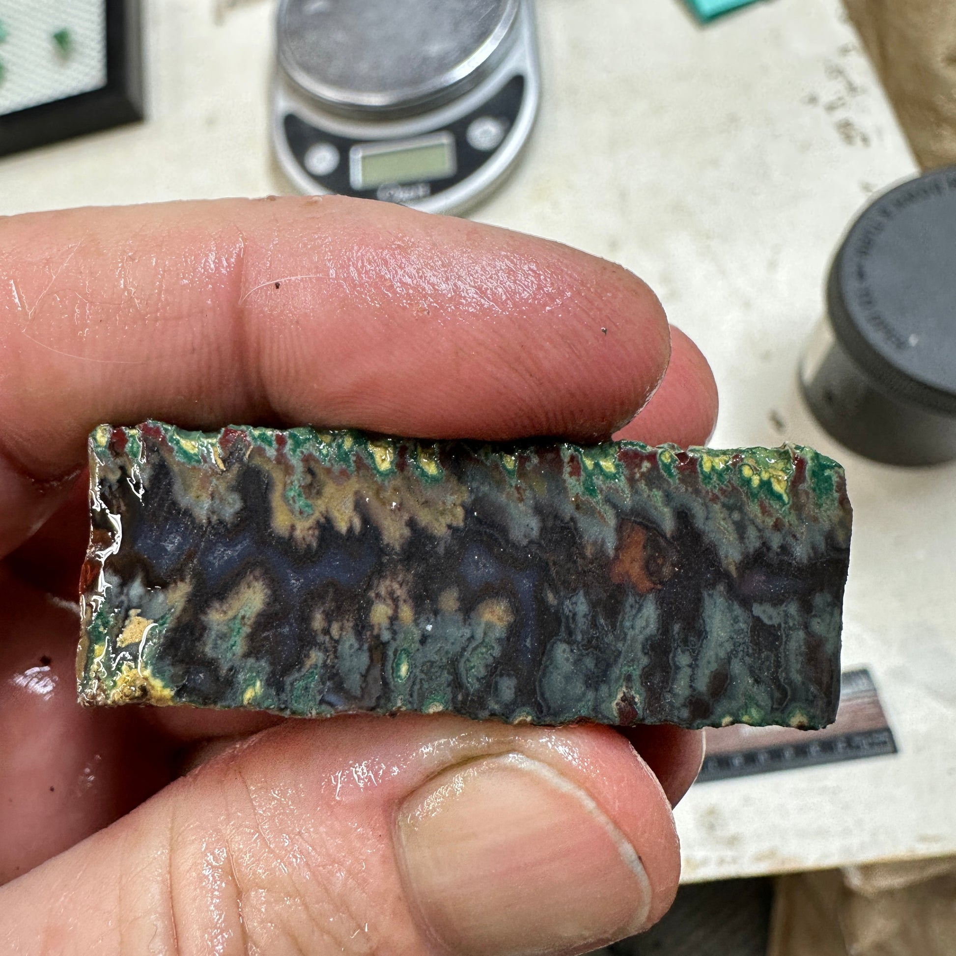 Excellent little cut and proven seam piece of rare and popular Idaho Wildfire Plume Agate perfect to trim out some cabs or polish as a collector piece!!!