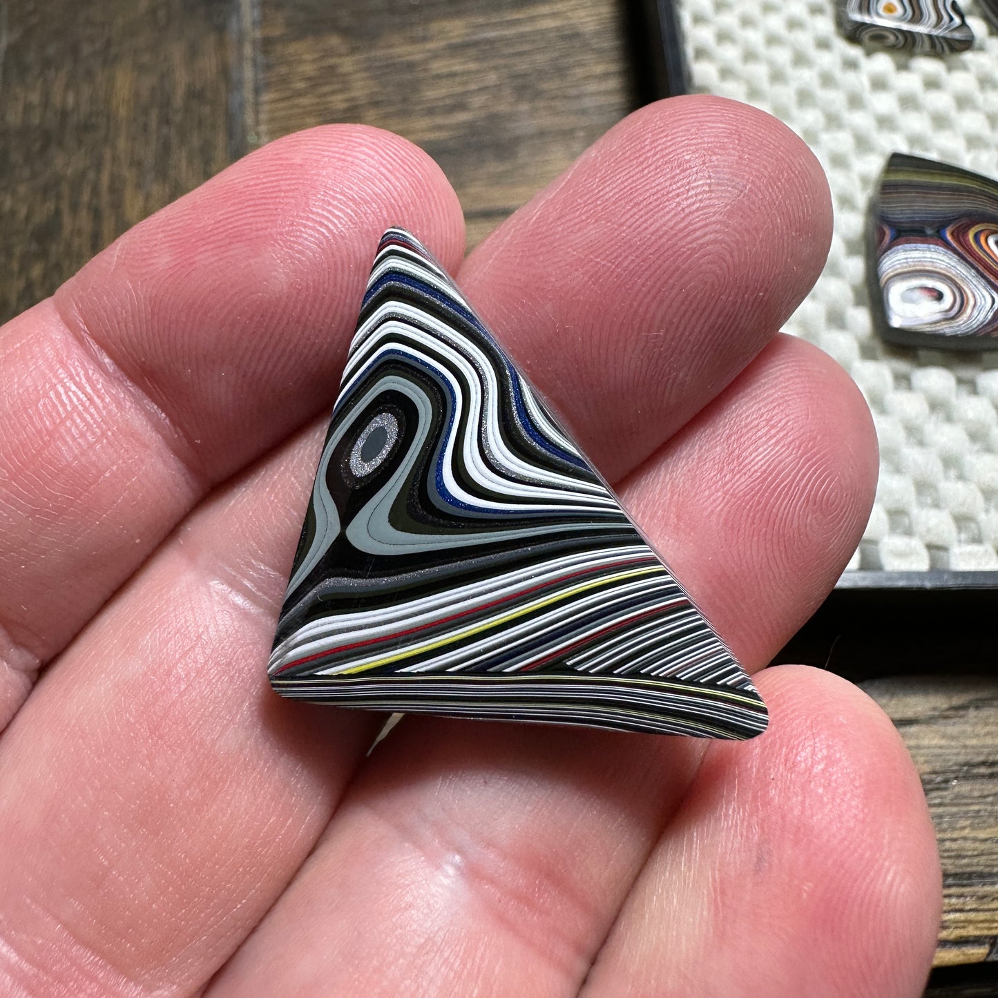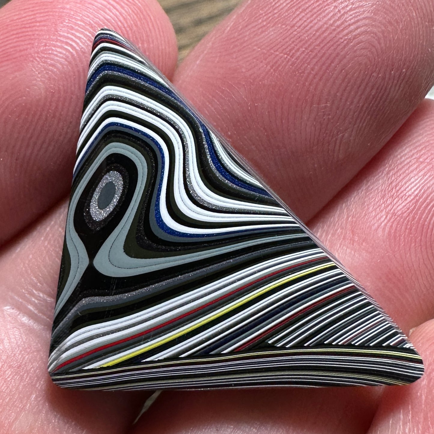 Well polished cabochon of Jeep Fordite with gorgeous psychedelic pattern and great color.