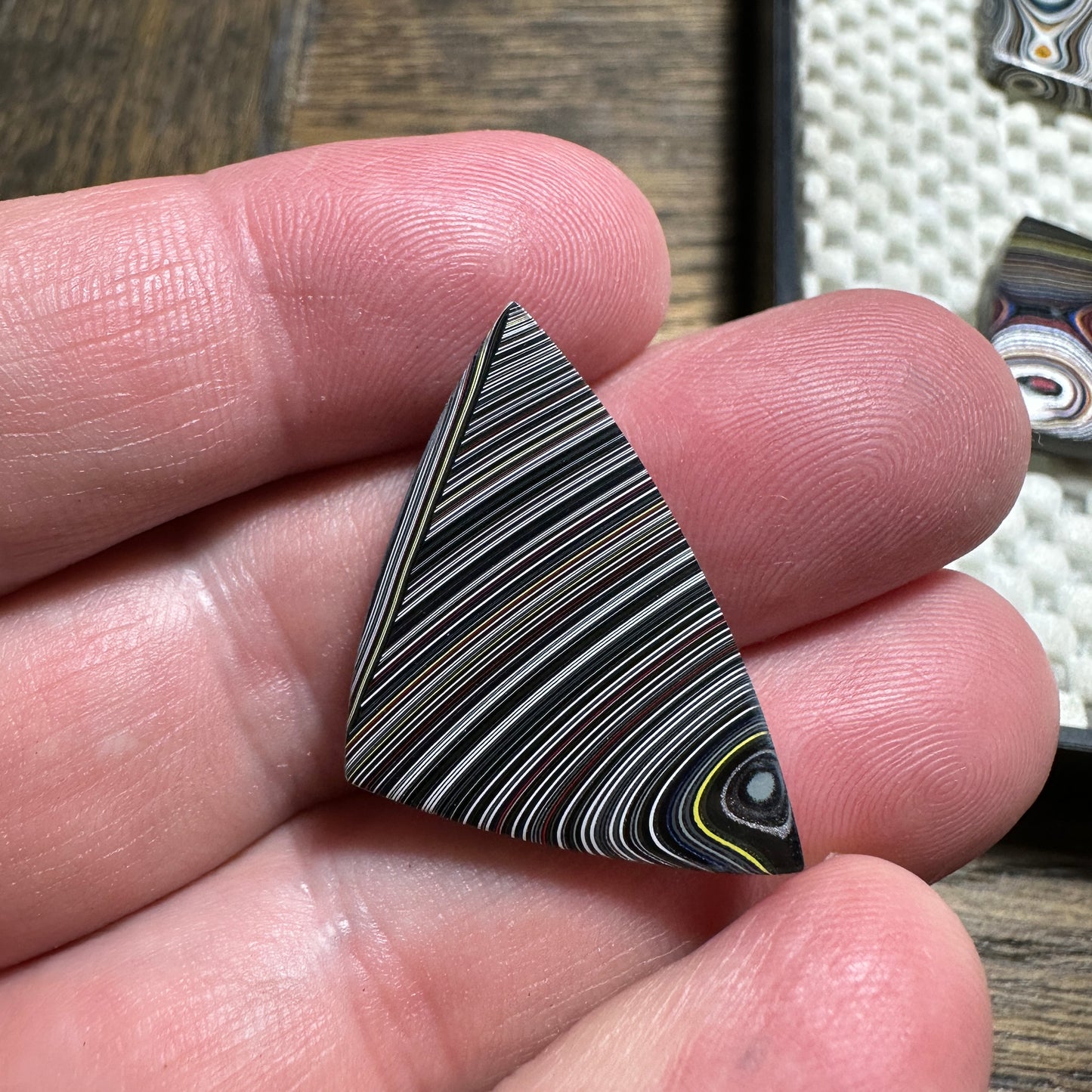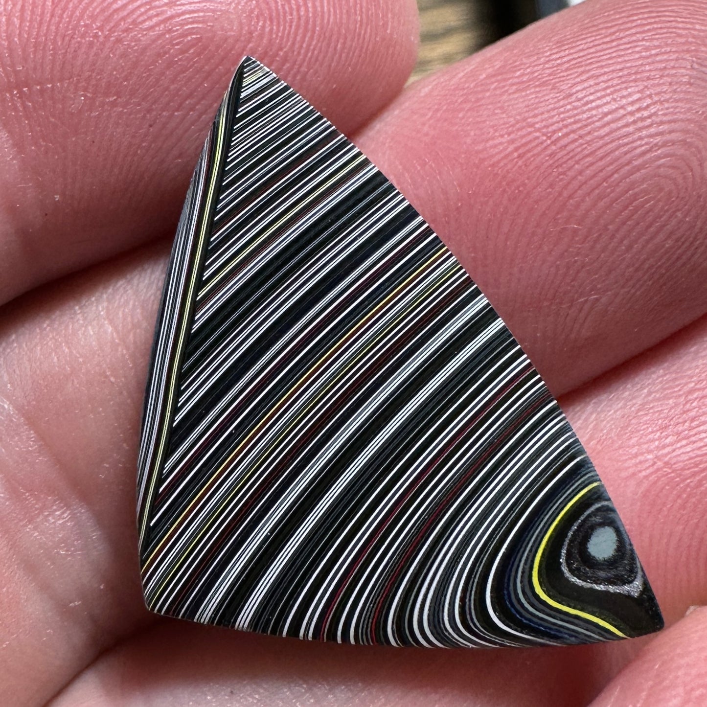 Well polished cabochon of Jeep Fordite with gorgeous psychedelic pattern and great color.