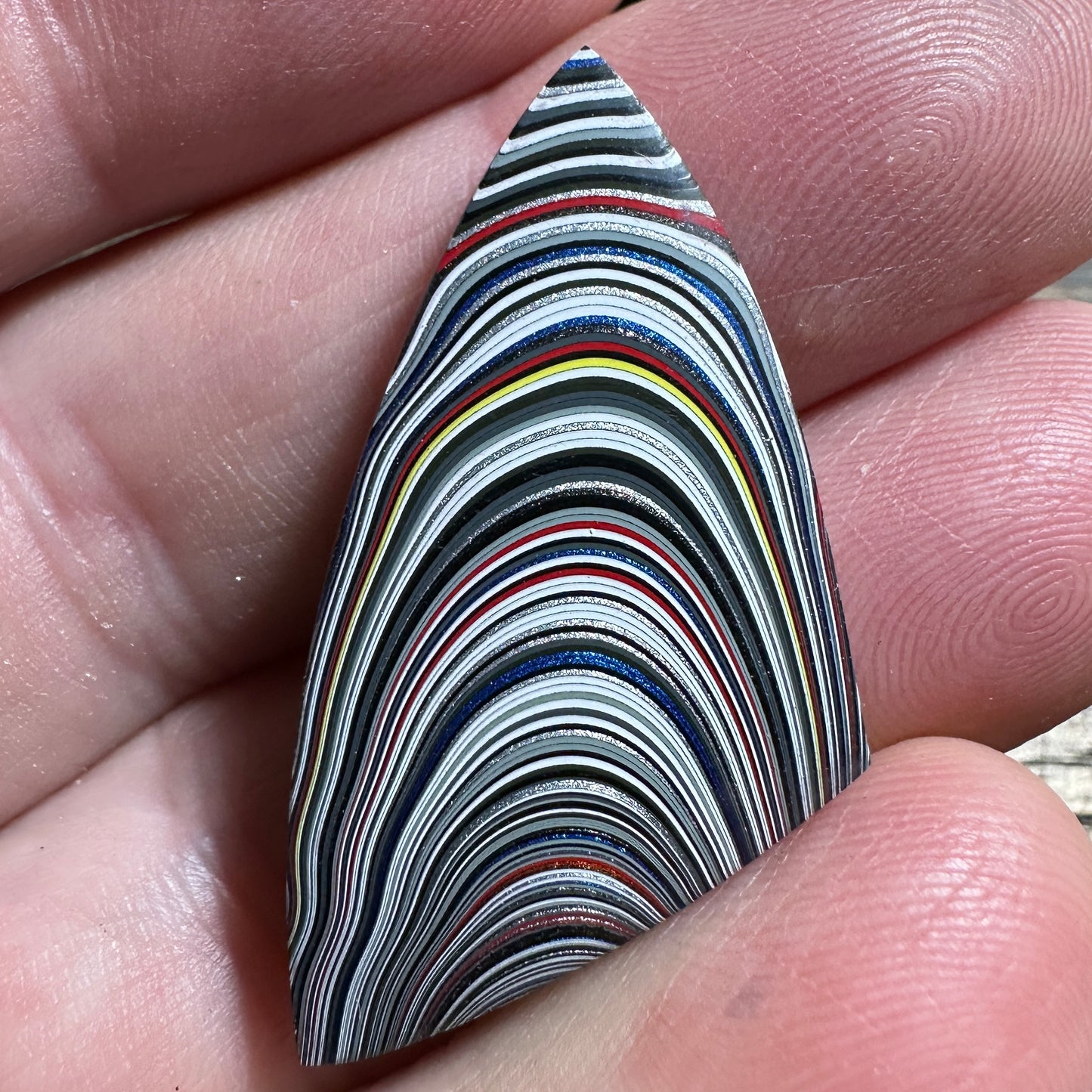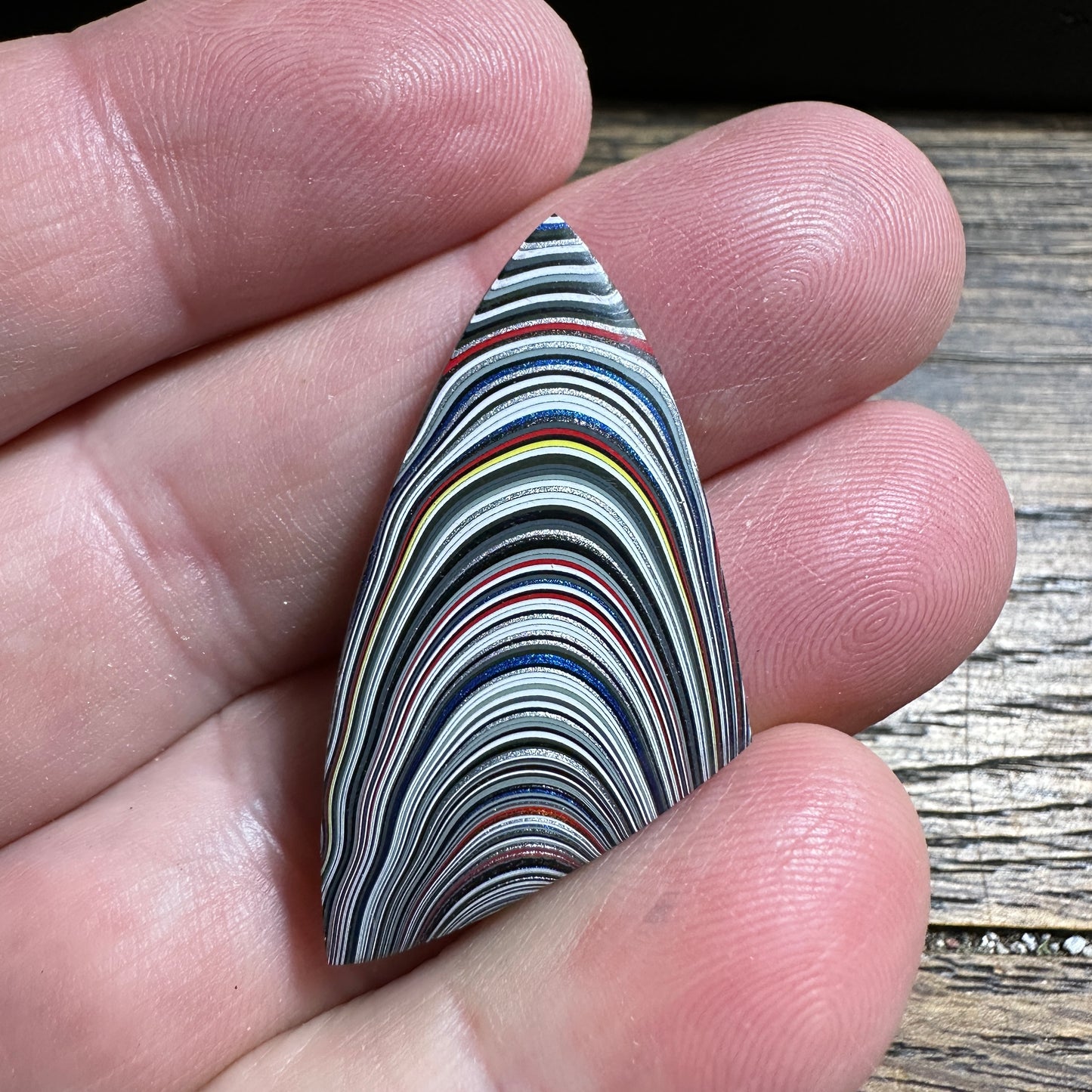Well polished cabochon of Jeep Fordite with gorgeous psychedelic pattern and great color.