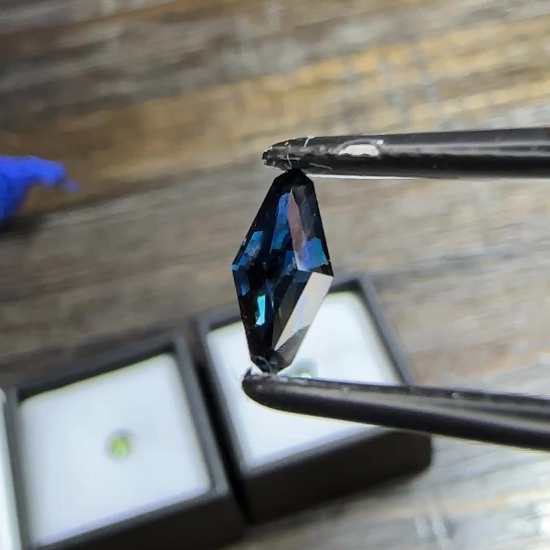 A deep blue freeform natural Sapphire from Kenya. Really well cut and polished with a unique shape to it and deep body tone. It’s a gorgeous unique sapphire, and is sure to thrill its new owner!