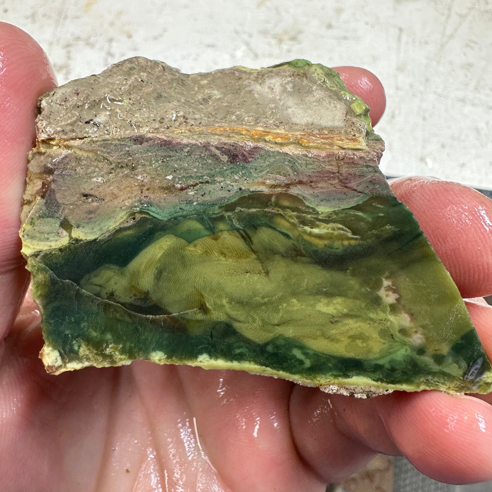Old time face cut chunk of “the king of jaspers” Morrisonite! I live not far but actually seldom get any access to rough at a price I can re-sell!!! Has one crack.