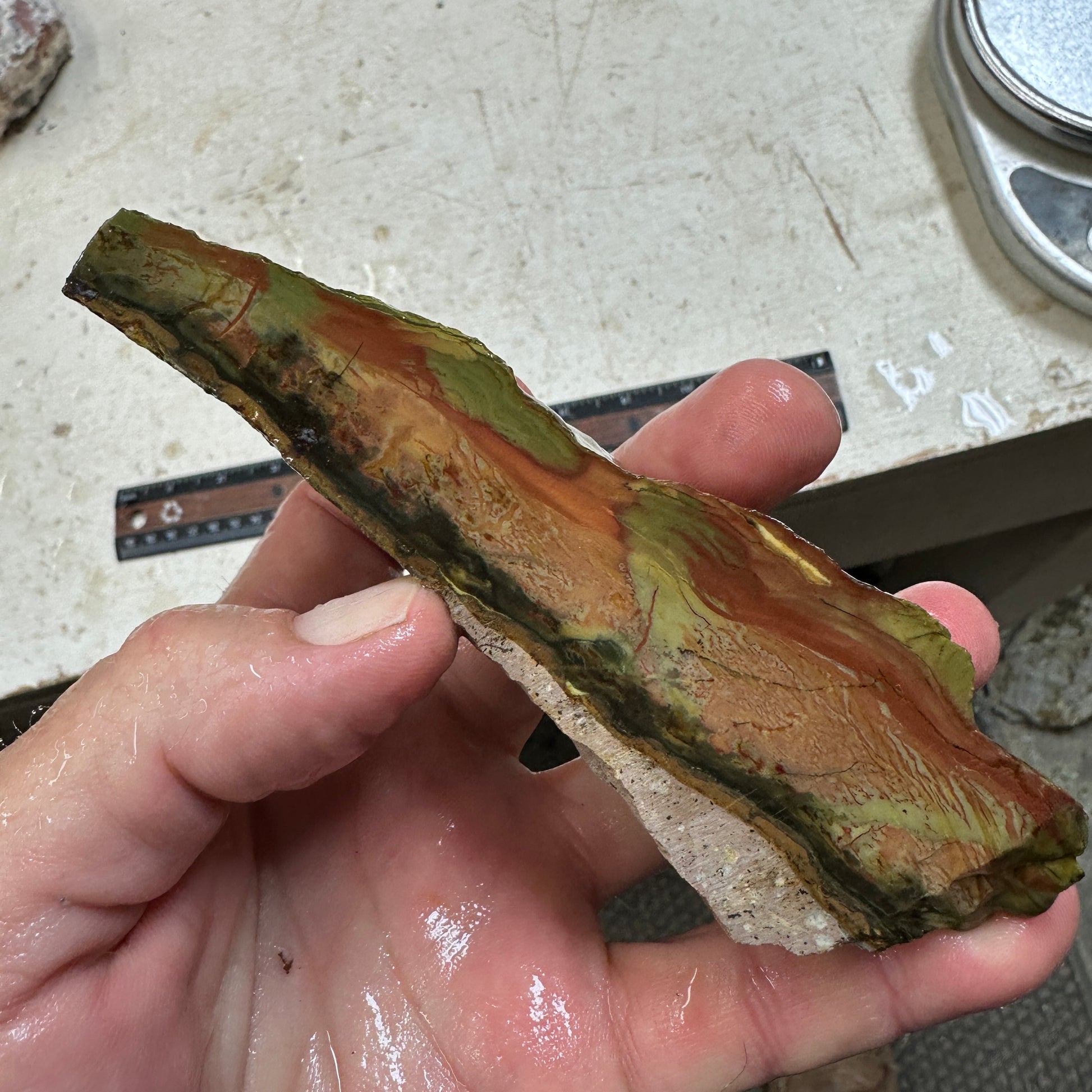 Old time face cut chunk of “the king of jaspers” Morrisonite! I live not far but actually seldom get any access to rough at a price I can re-sell!!! Has one crack.