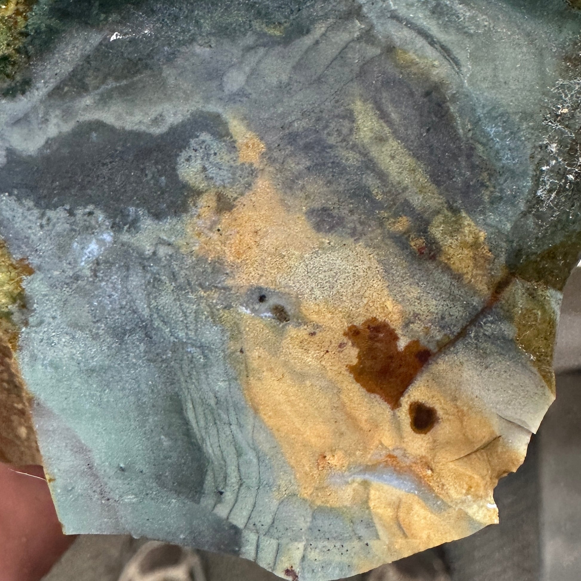 Beautiful chunk from some of my AAA orbed grade Echo Ridge Jasper. Definitely will trim out some outstanding cabochons!!!!