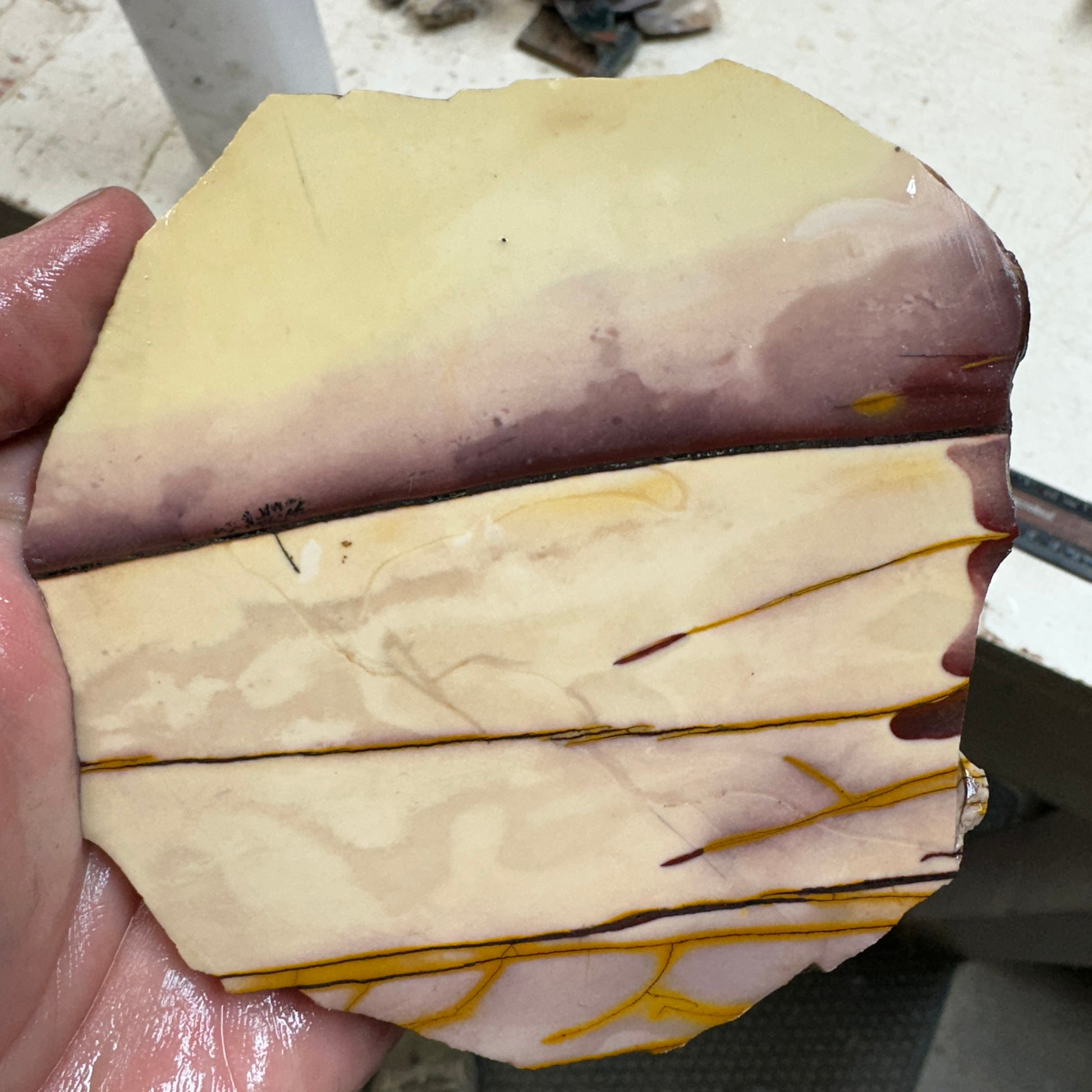 Premium slice of rare Pastel Mookaite an opalized pastel version of Mookaite! Not much gets encountered while mining I’m told. This truly is a great example for the cabochon cutter.