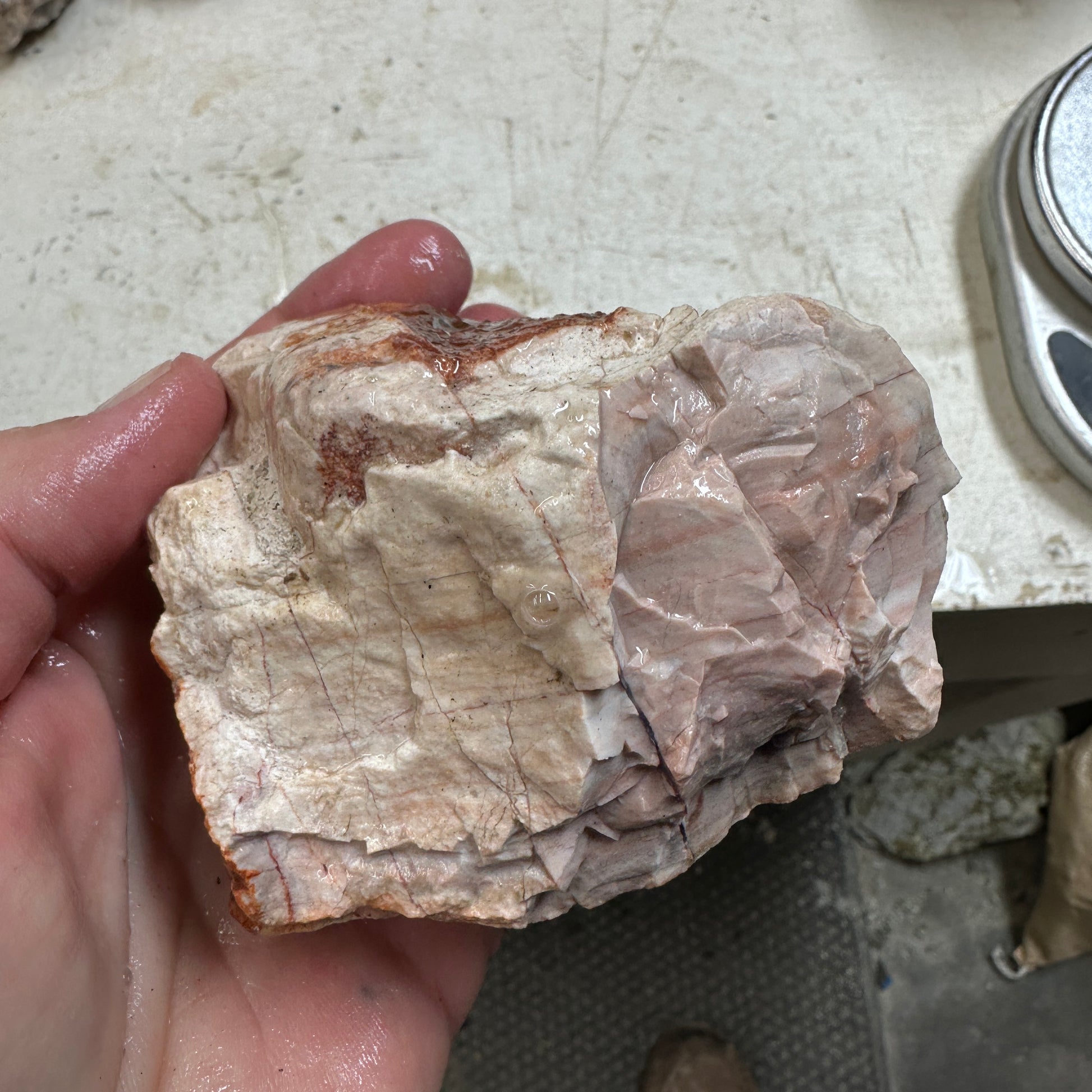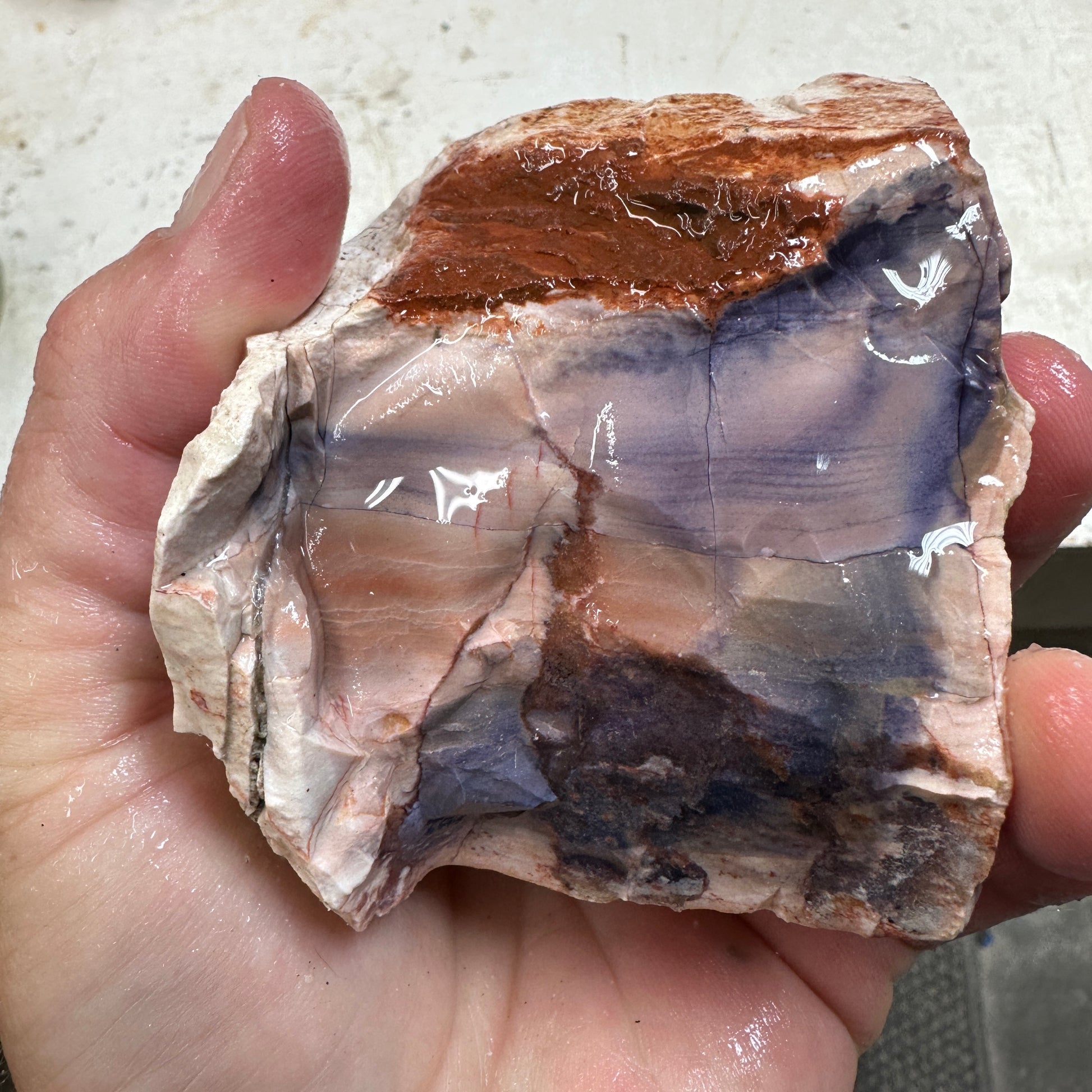 Phenomenal chunk of Tiffany Stone!!! Purple and orange inside and super solid from an area that produced very good hard material. Truly this chunk will cut phenomenal slabs and cabs!!! This is original old stock Tiffany Stone from the pits of the Brush Wellman Beryllium Mine.