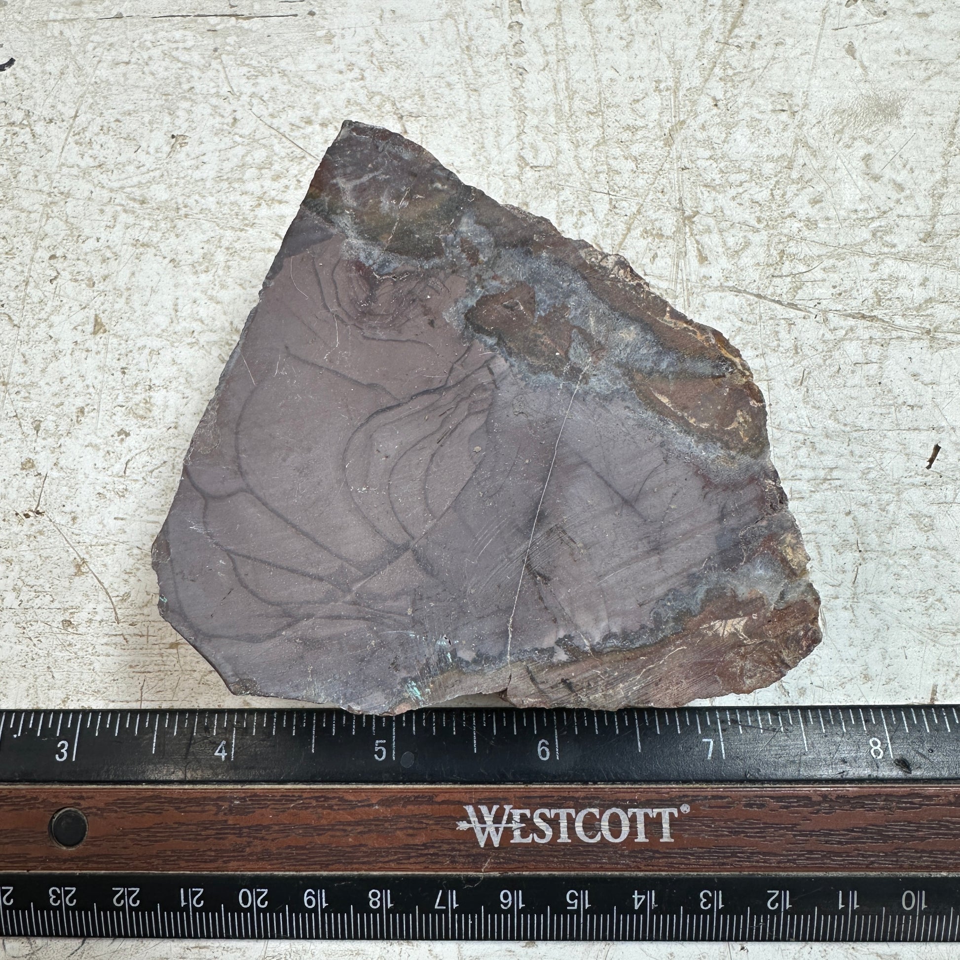 An excellent example of the Chocolate pit jasper with a classic look with lots of overlapping orbs!!! Excellent quality, very solid for cutting cabs!!!