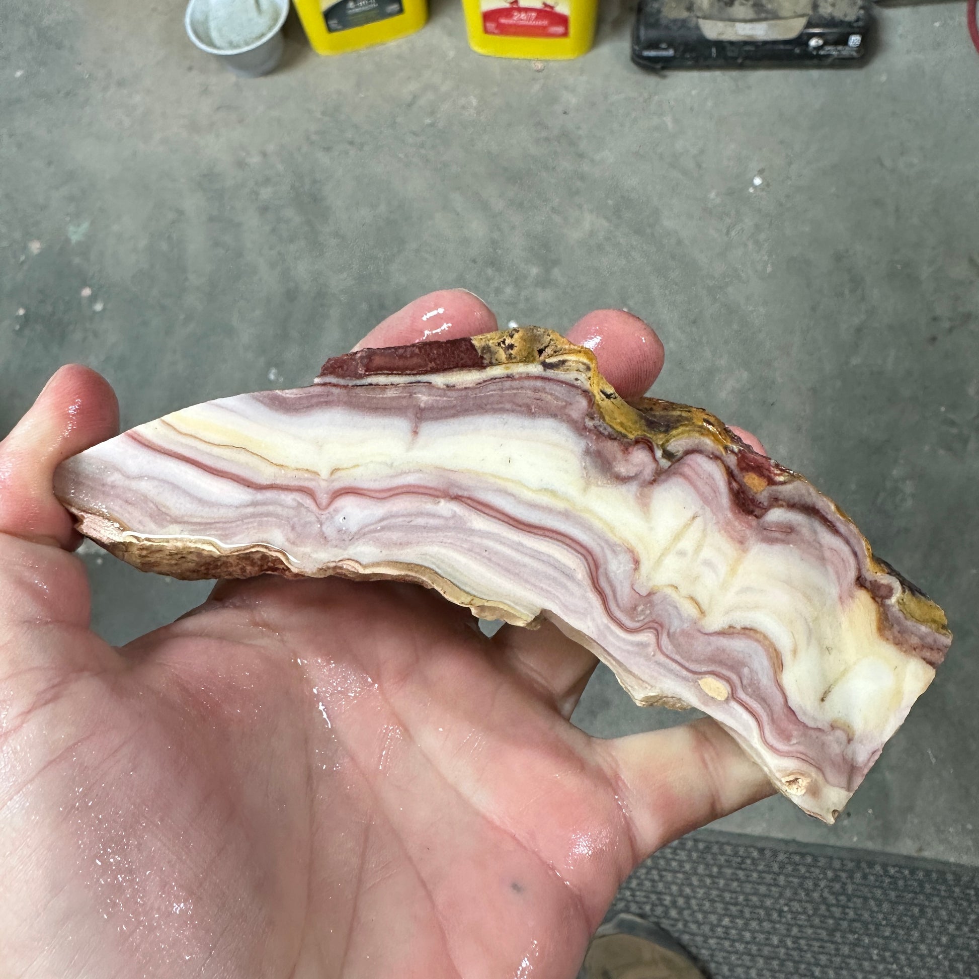 An excellent example of Windy Mountain Agate from near Empire, Nevada with the colorings coming from gold and silver!!! It’s technically not an agate its a silaceous Kaolinite Clay formed through deposition of silica bearing waters through gold and silver bearing clay. Excellent quality, very solid for cutting cabs or polishing as a specimen!!!